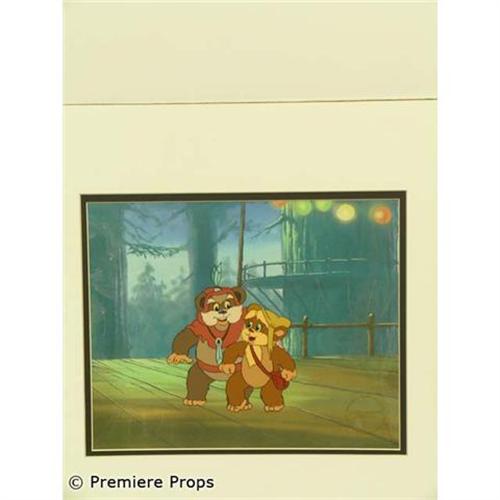 Star Wars: Ewoks - Animation Cels - This lot includes 3 cels and 3 hand drawn sketches from Filmation Studios. This item is matted and measures approximately 40" x 27". This item is oversized and will require additional shipping charges. Please e-mail for shipping rates before bidding. Be sure to add this rare collectible to your movie memorabilia collection today! (FLM3016)