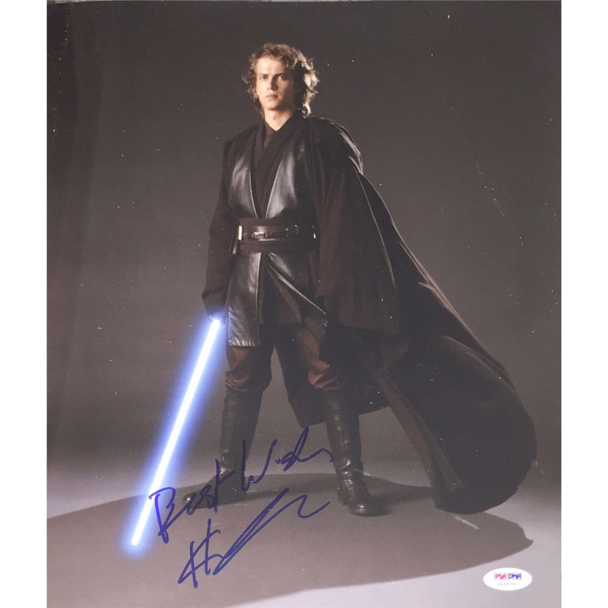 A PSA DNA stickered color 11x14 of Hayden as the star of the later Star Wars films with light sabre extended adding Best Wishes as well