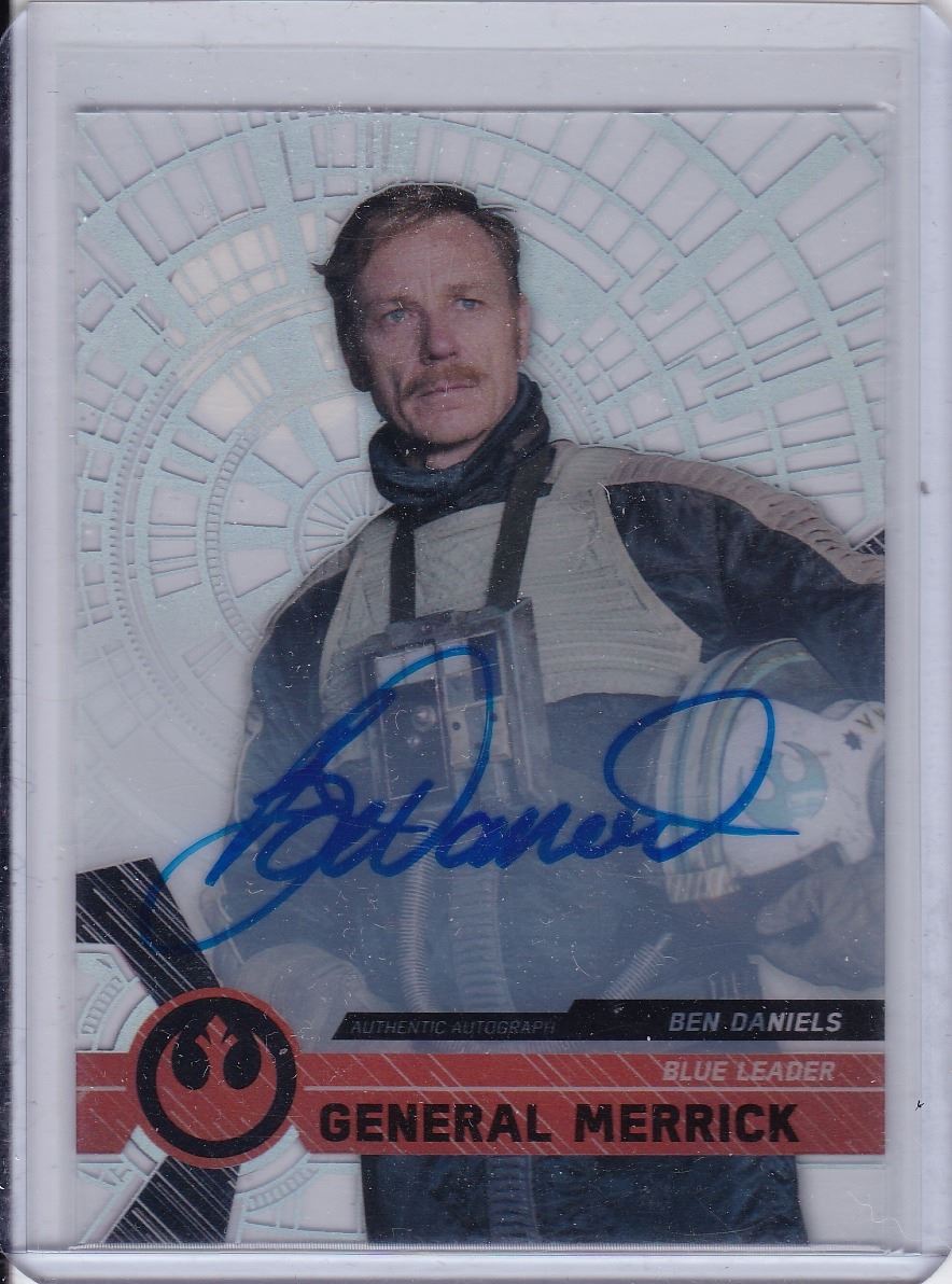 Star Wars High Tek Ben Daniels as Blue Leader General Merrick Autograph card. The Authenticity of the autograph is guaranteed by the card manufacturer