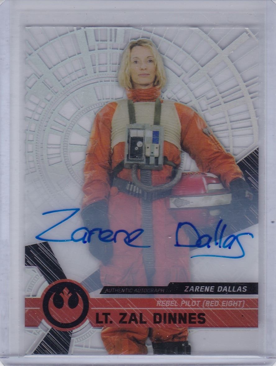 Star Wars High Tek Zarene Dallas as Lt. Zal Dinnes Autograph card. The Authenticity of the autograph is guaranteed by the card manufacturer