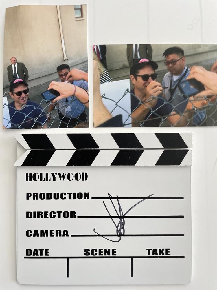 J.J Abrams signed clapperboard with photos. 8x12 inches