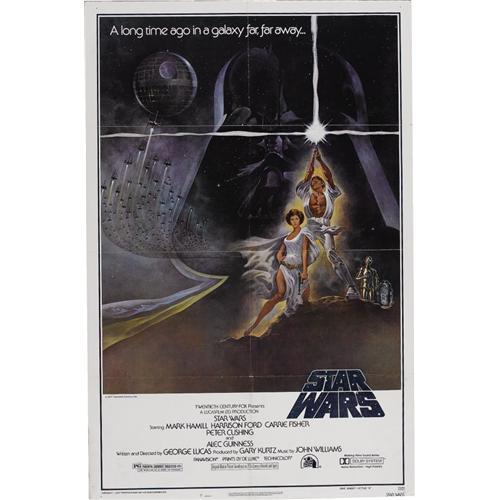 <B>"Star Wars" One Sheet Poster (20th Century Fox, 1977) Condition: FN.</B></I> Folded Style A poster, with minor fold holes, tiny crease separations, and corner bends. 27" x 41".<BR><BR><b>Shipping:</b> Flat Material, Large (<a target="_blank" href="http://www.heritageauctions.com/common/shipping.php">view shipping information</a>)
