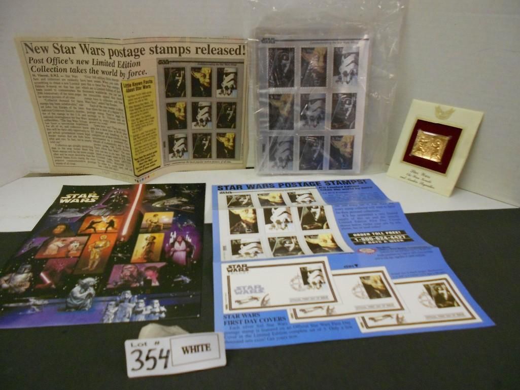 Star Wars Postage Stamps: Complete USPS Star Wars Stamp Collection - Unopened with gold foil Obi-Wan and Anakinstamp, includes bonus sheet of Star Wars Stamps with literature.