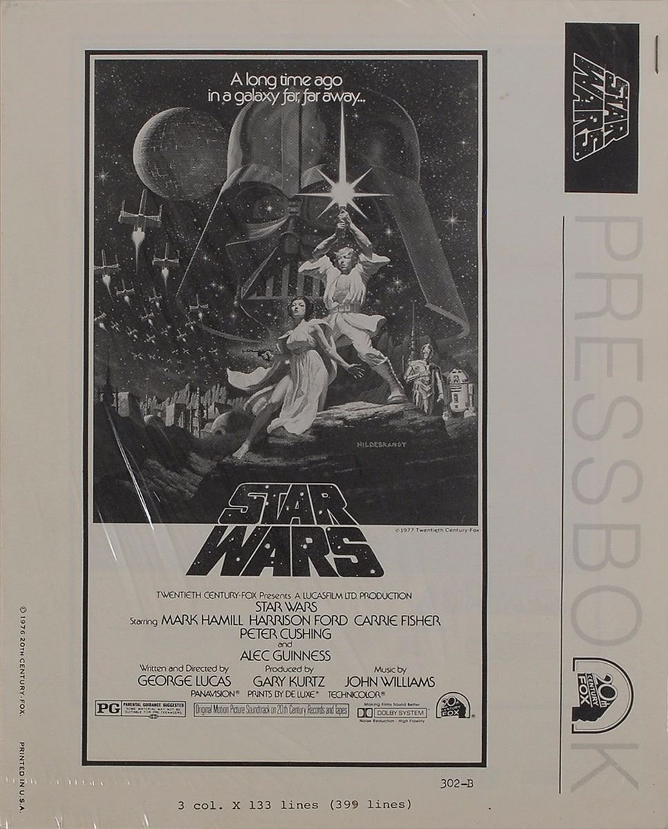 Original 20th Century Fox pressbook for the 1977 film Star Wars, 8.5 x 11, still sealed in its original wrapper. In fine condition.