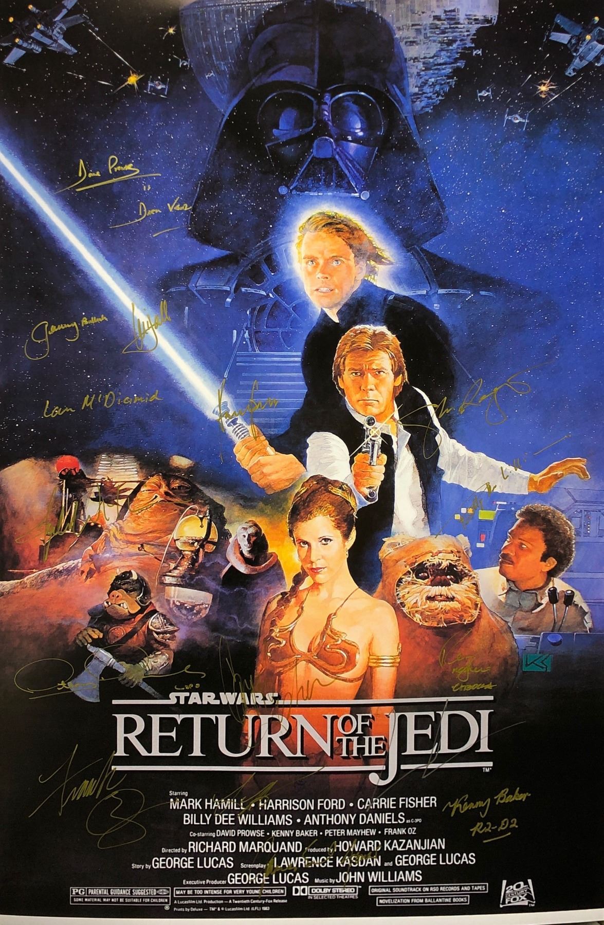 Star Wars Return of Jedi Poster Mark Hamill Harrison Ford Carrie Fisher Autographed Signed