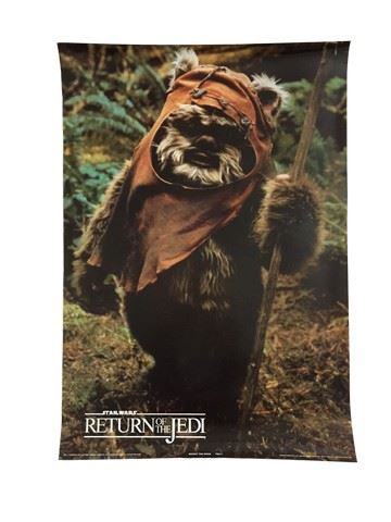 Star Wars: Return of the Jedi (Lucasfilm Ltd.,1983) One Sheet. Wicket The Ewok. Very Fine. There are minor creases and edge wear damage. (35" x 24"). This Star Wars poster comes directly from Carrie Fisher's personal collection and is also part of the Debbie Reynolds archive collection. This amazing memorabilia comes direct from the Debbie Reynold's archive collection.