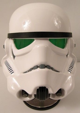 Perhaps the most iconic helmet in movie history, this is a full size plastic replica Star Wars Storm Trooper's helmet from EFXCollectables who are the official licensed replica makers for Lucas Films. Helmet is very wearable, and comes with a custom made stand and post for display. (Approx. 10"x9"x9")