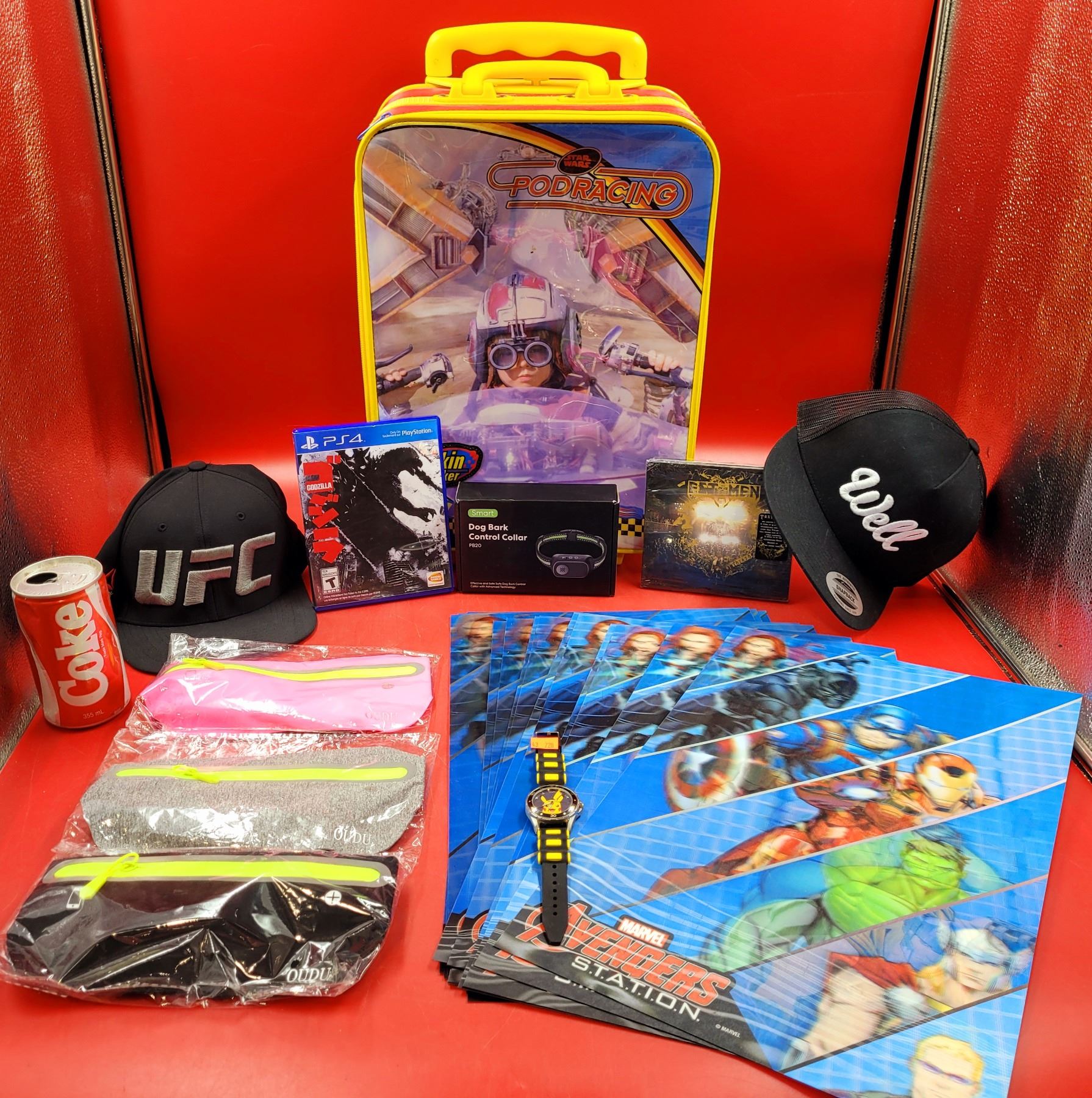 Star Wars Suitcase, Avengers Posters, Godzilla PS4 Game, Pikachu Watch, Testament CD, & More