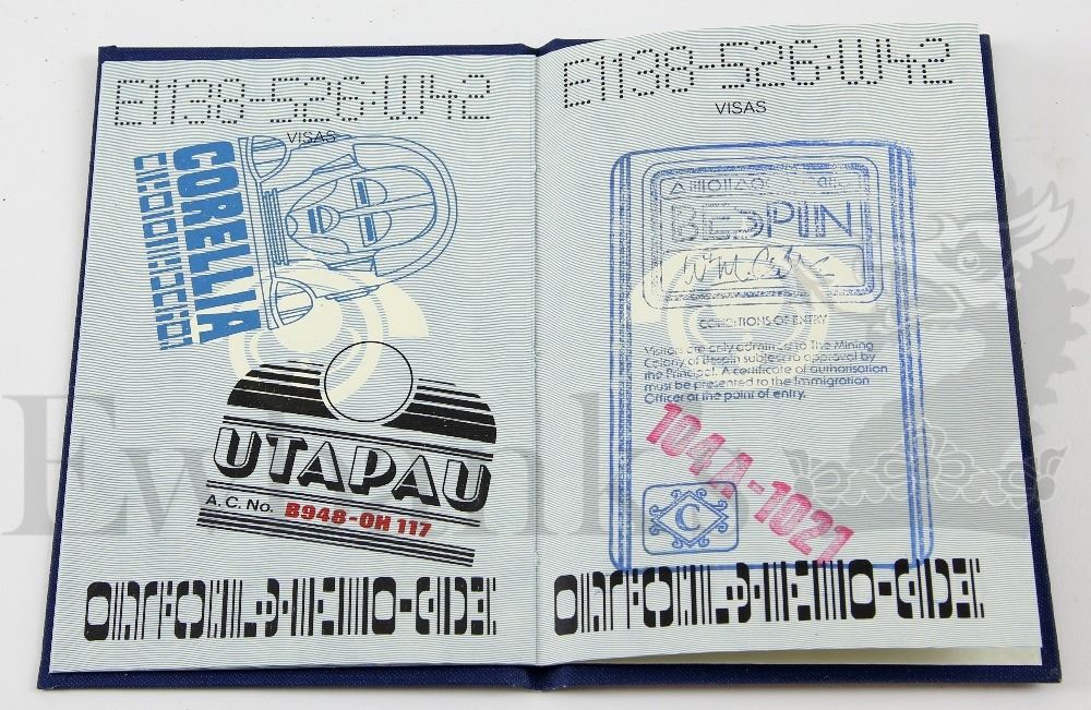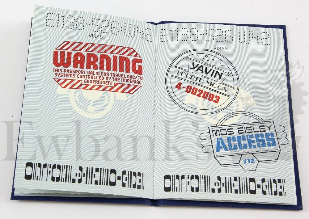 † Star Wars The Empire Strikes Back (1980) Cast and Crew exclusive issue 'Passport'. The Passport was designed and thought up by Star Wars and Empire Strikes Back Producer, Gary Kurtz, to enable full security within the Star Wars stages during filming at Elstree Studios, whilst at the same time adding an ingenious piece of Star Wars magic. Called the Passport for obvious reasons, being that pages had to be stamped for clearance on to certain named areas of the Star Wars Stages. A high quality item with thick board covers and sixteen different pages, many featuring Star Wars associated emblems and illustrations. The Passport is stamp numbered to the front and with stamps inside, indicating it was actually used which is rare amongst the known surviving examples. Please note that VAT is payable on top of the hammer price at 20% in addition to standard buyers premium inc. VAT for this lot.