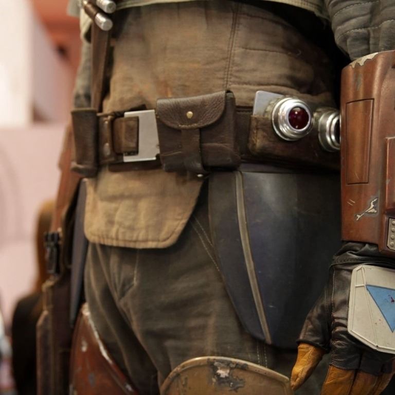 Original light-up bomb (with button to make light work) used by "The Mandalorian" played by Pedro Pascal in the Jon Favreau created science fiction television series 'The Mandalorian' (2019-), beginning five years after the events of Return of the Jedi (1983), and stars Pedro Pascal as the title character, a lone bounty hunter who goes on the run to protect "The Child".