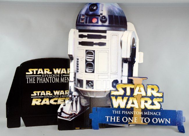 Star Wars, a number of standees for Episode I, a standee of R2 D2 & seven unboxed toys from the first Star Wars series