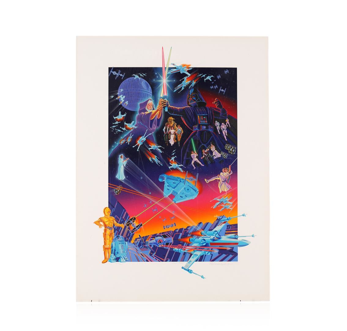 Star Wars is a licensed, limited edition serigraph on fine art paper, produced in Melanie Taylor Kent's 1990's heyday. Coveted by Star Wars collectors and Comic Con fans, this Vintage print is as relevant today as it was when created 20 years ago. Limited Edition S/N Serigraph #532/600.