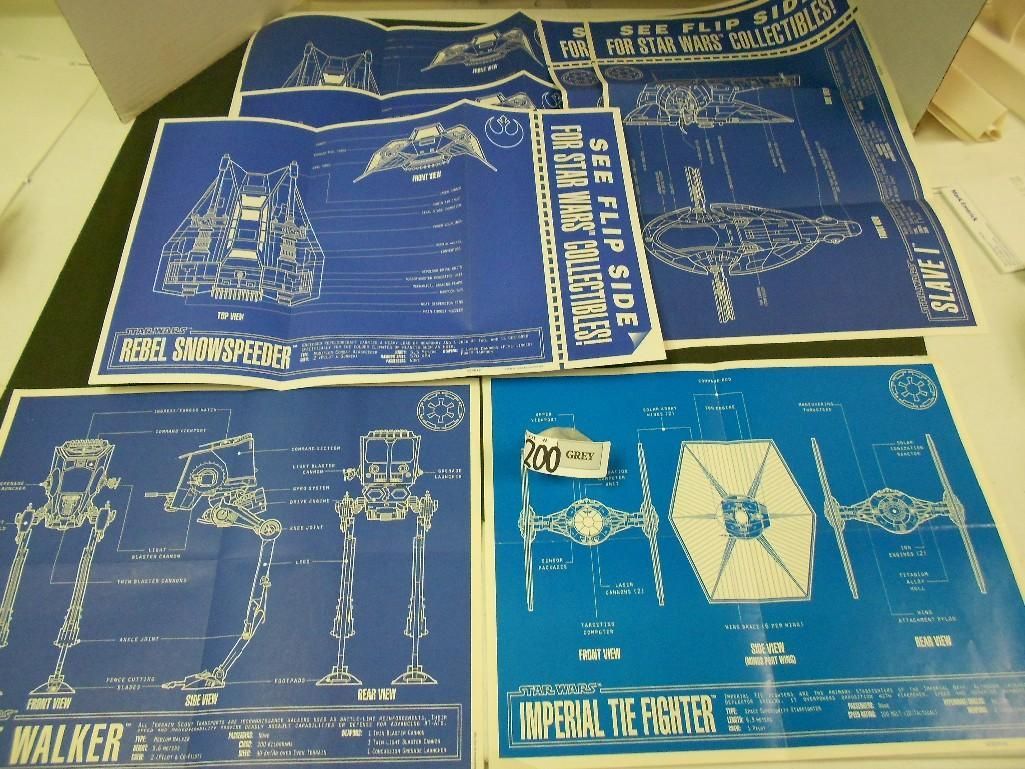 Star Wars vehicle blueprints. - (3) Snow Speeders - (2) Slave 1 - (1) AT-ST - (1) Tie Fighter For One Money