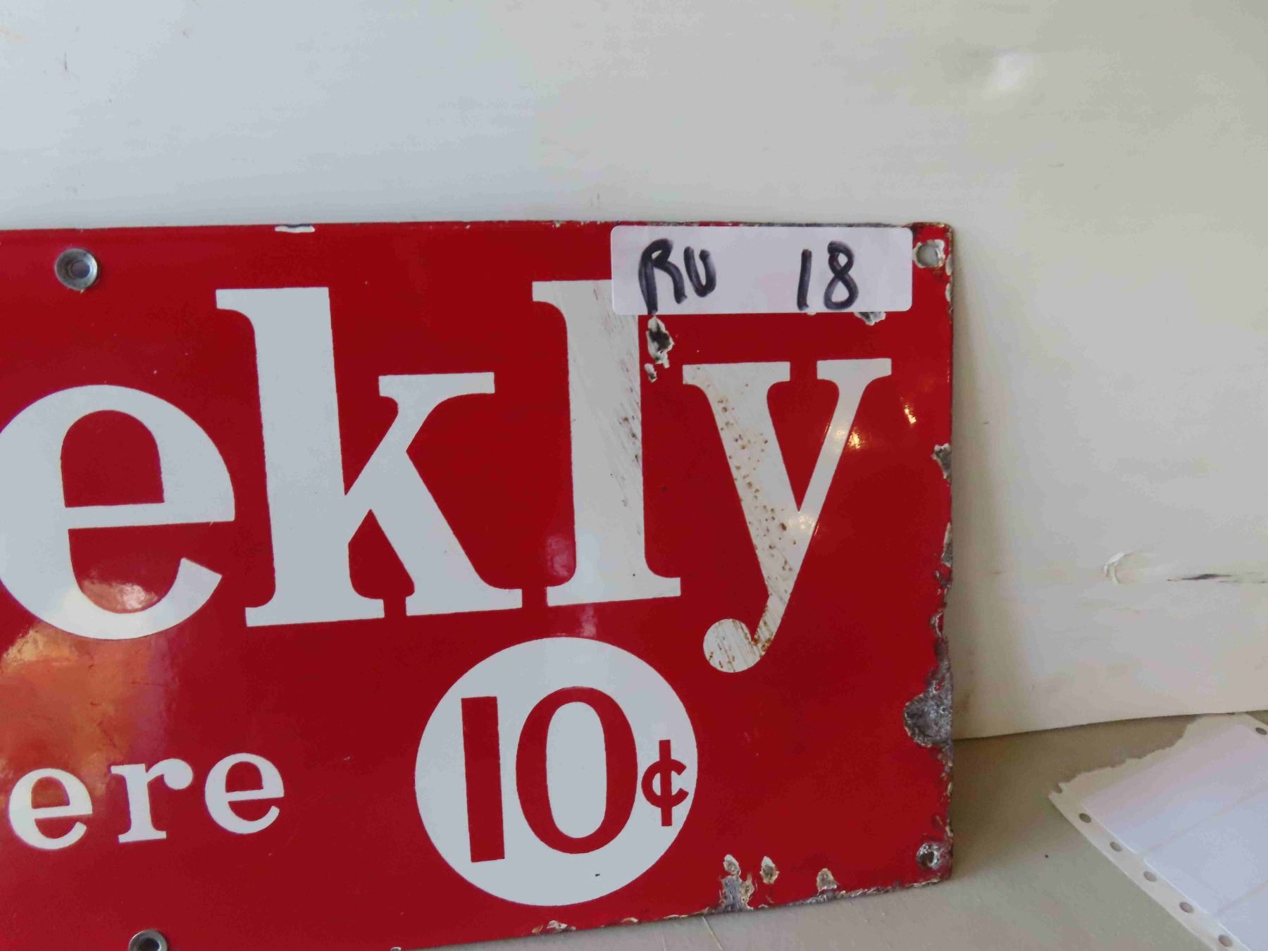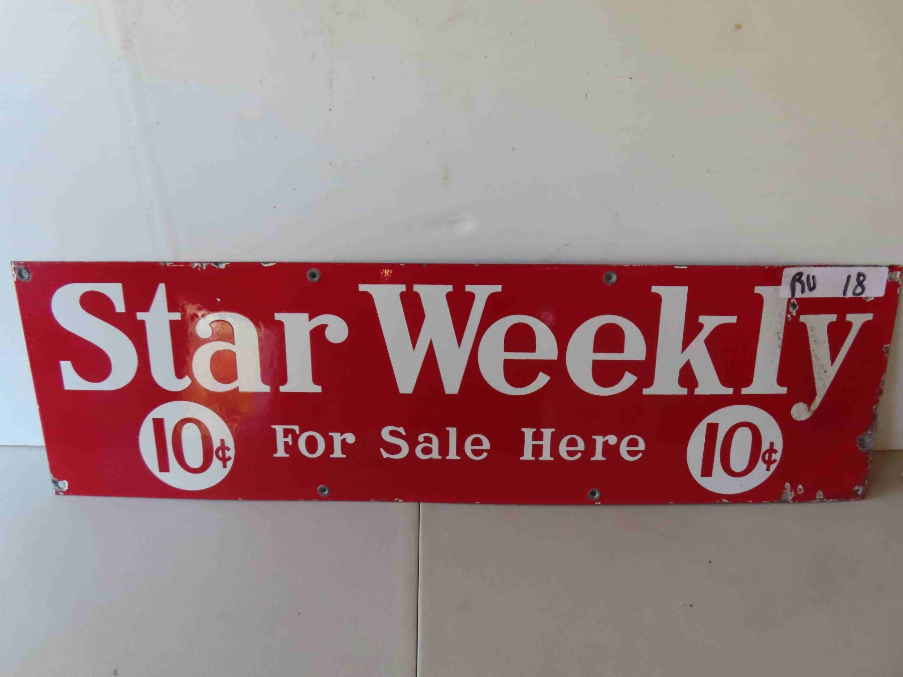 Star Weekly 10 Cent 'For Sale Here' Porcelain Sign 8'' x 28''