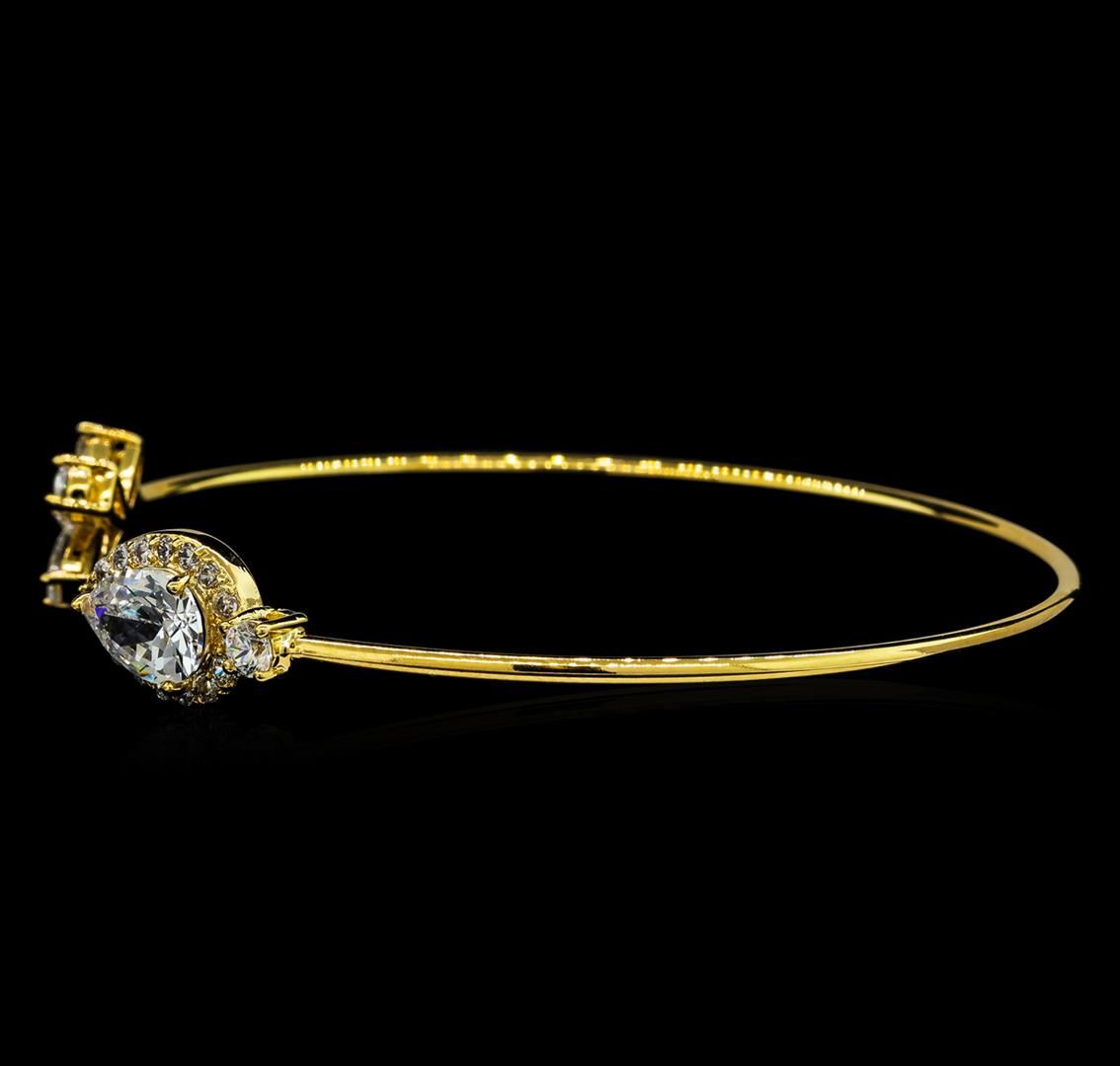 High end designer jewelry. Star and Drop CZ Open Bangle Bracelet - Gold Plated. 18 K Gold Plated Metal. Clear/ Gold. Adjustable. Total Weight: 4.7 grams.