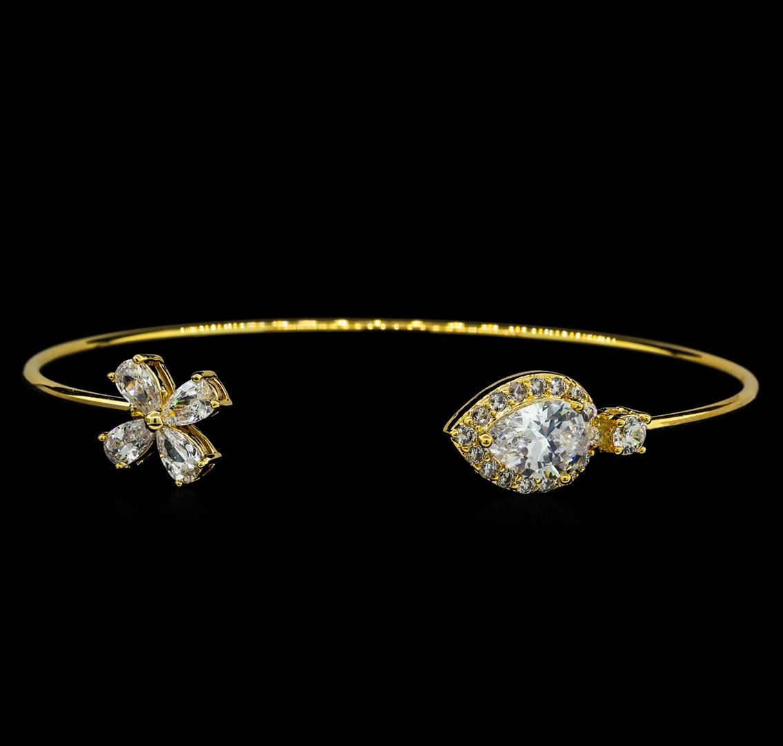 High end designer jewelry. Star and Drop CZ Open Bangle Bracelet - Gold Plated. 18 K Gold Plated Metal. Clear/ Gold. Adjustable. Total Weight: 4.7 grams.