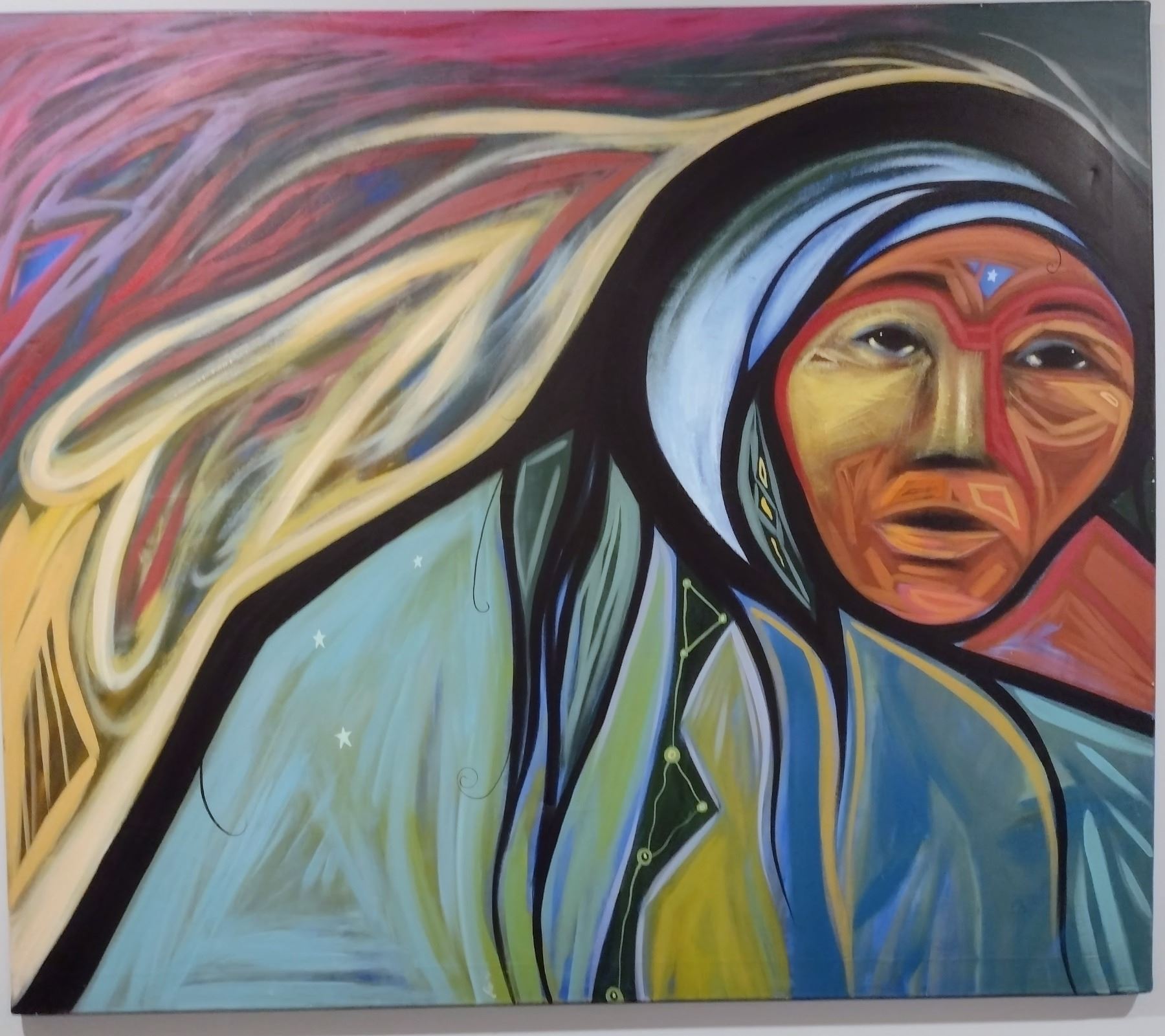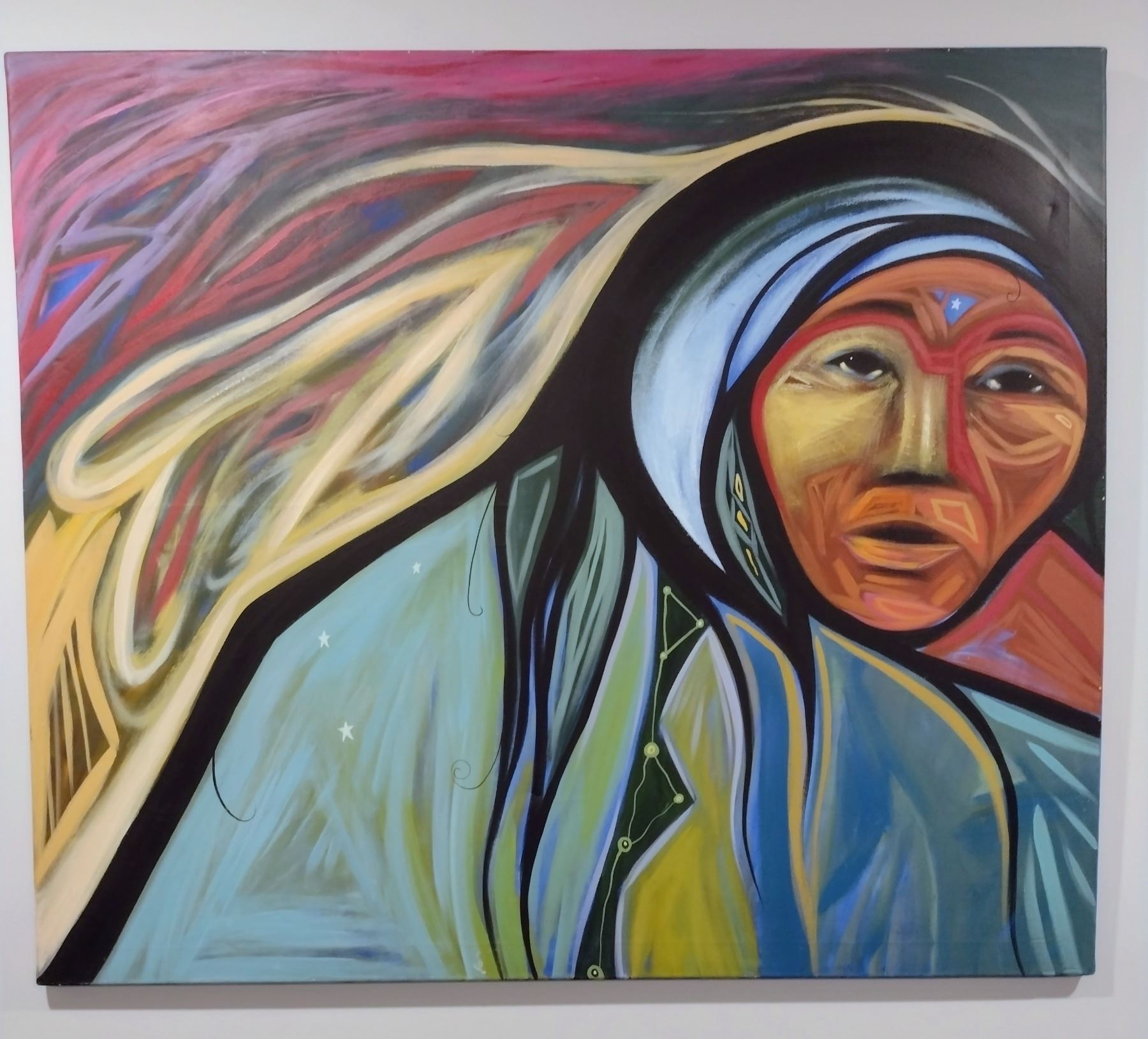 “Star woman,” D.J. Tapaquon original acrylic painting on canvas. This is a large canvas which would look good on any wall. Marvelous, sweeping colors another contemporary jewel. 42 inches by 36 inches