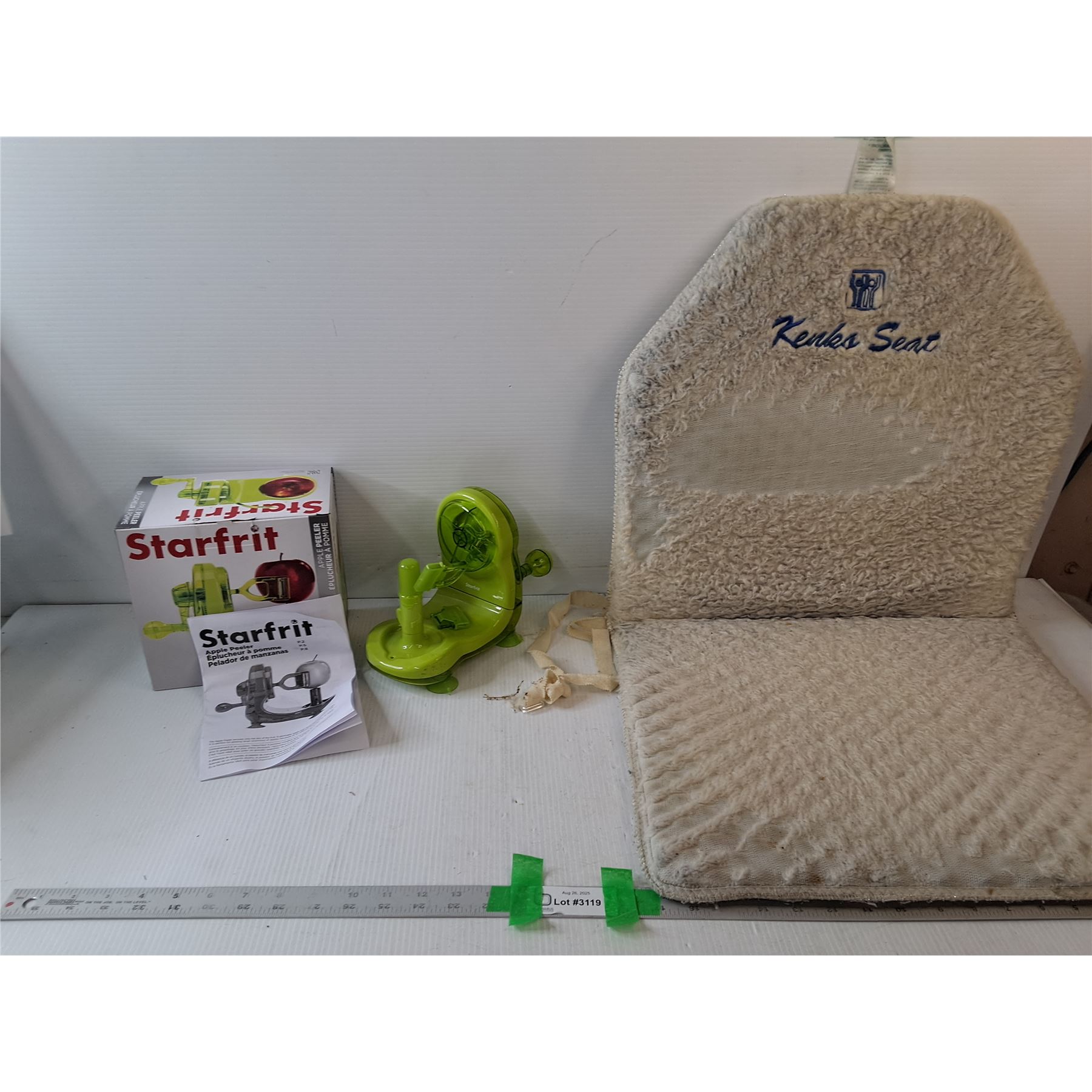 StarFrit Apple/Fruit Peeler and Memory Foam Pressure Massage Seat Cover AS IS