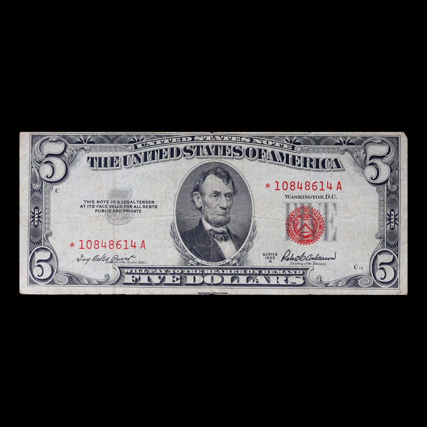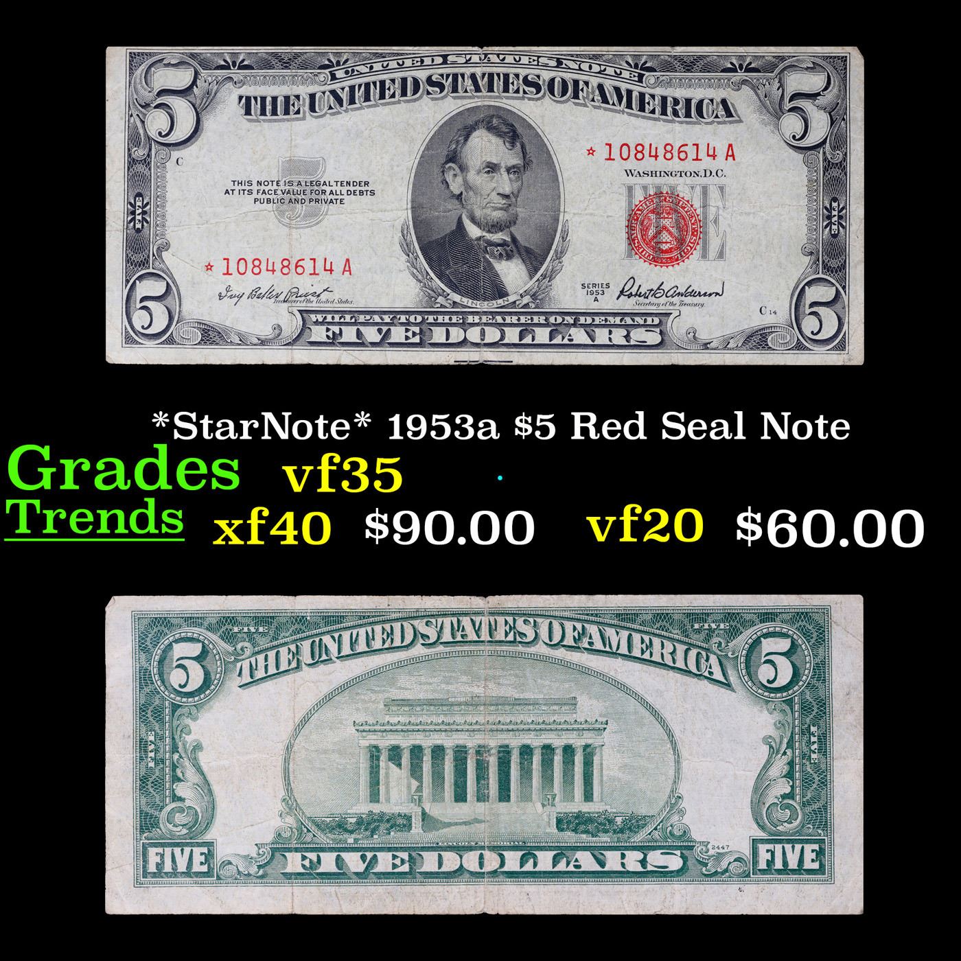 *StarNote* 1953a $5 Red Seal Note Grades vf++.
