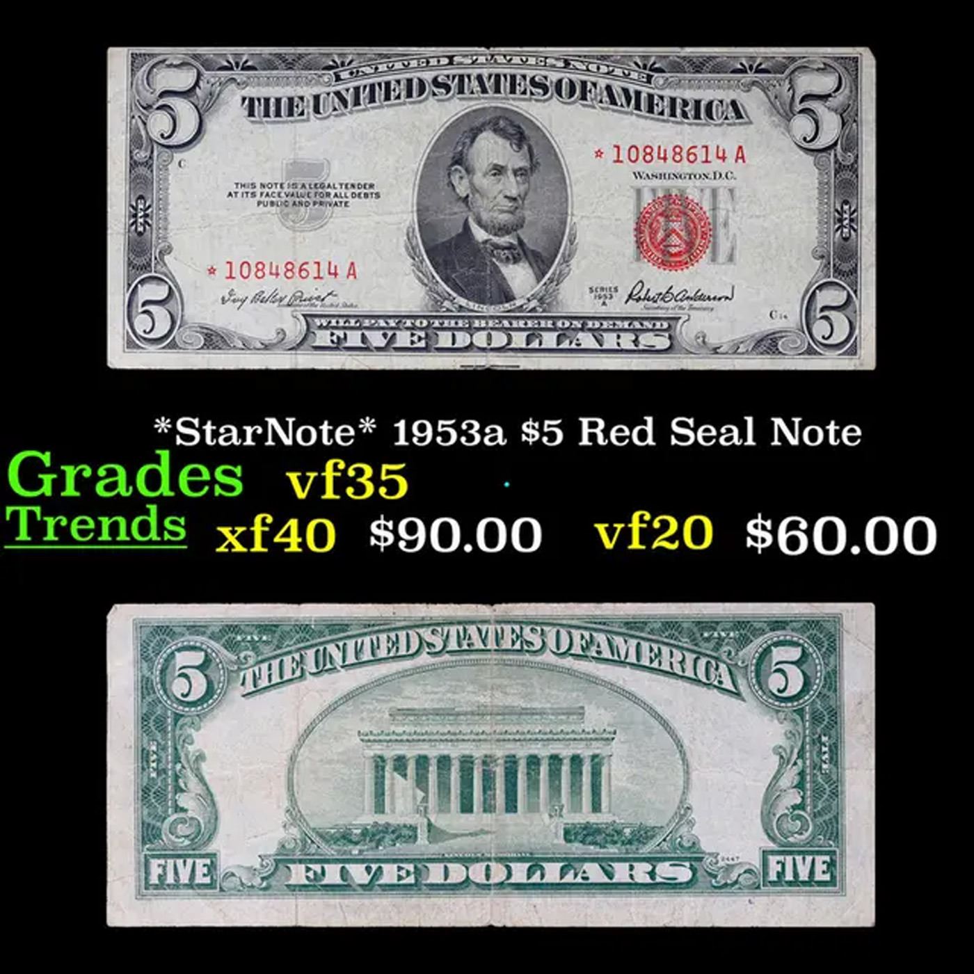 *StarNote* 1953a $5 Red Seal Note Grades vf++.