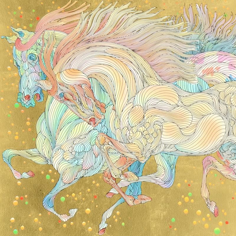 "Stardust" is a limited edition serigraph on paper with hand laid gold leaf by Guillaume Azoulay, numbered and hand signed by the artist. Includes Certificate of Authenticity. Measures approx. 35" x 25" (border), 31" x 19" (image).