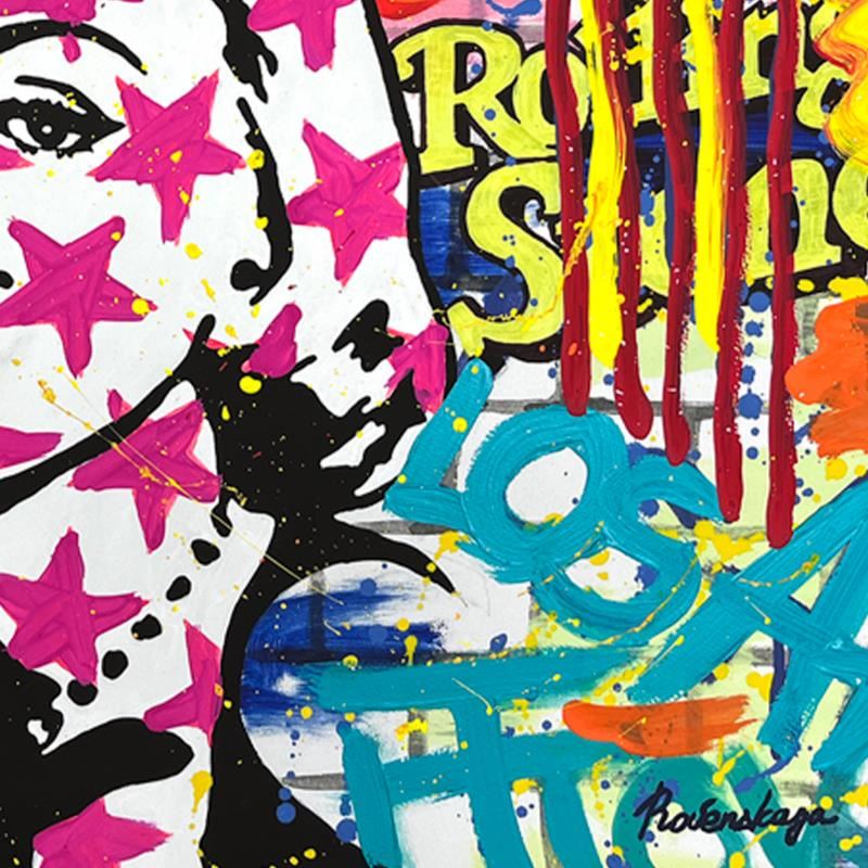 "Starface" is a one-of-a-kind mixed media on deckle edge paper by Nastya Rovenskaya; hand signed by the artist. This piece comes custom framed and includes letter of authenticity. Measures approximately 30" x 36" (framed), 24" x 30" (image). This item requires special handling and may have a longer than usual turnaround.