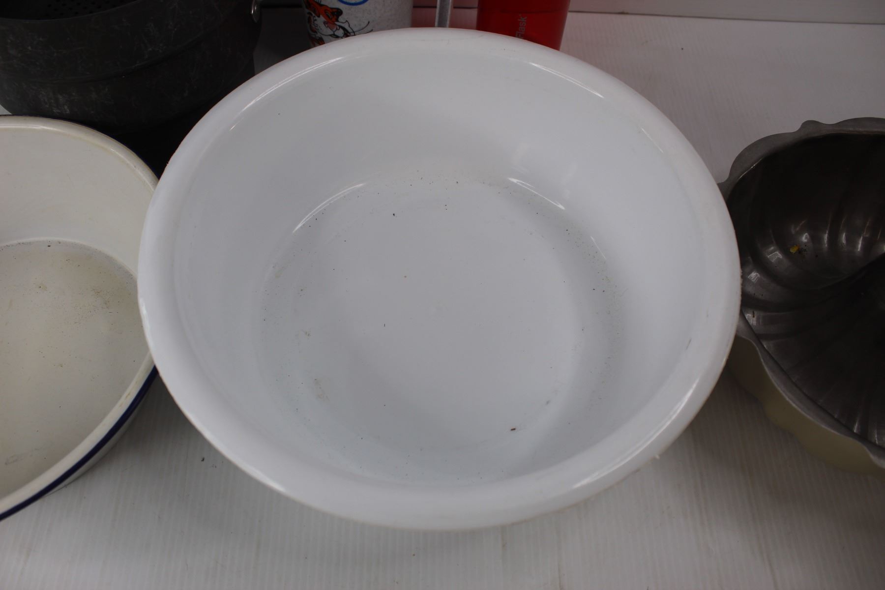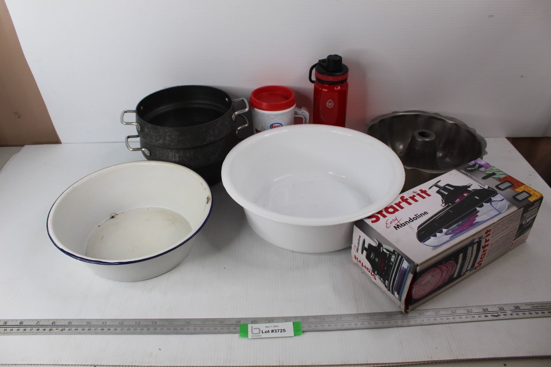 Starfrit Cabbage Cutter- NIB, Bunt Cake Pan, Enamel Ware Bowl, Esso Coffee Cup w/ Tiger, Misc.