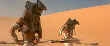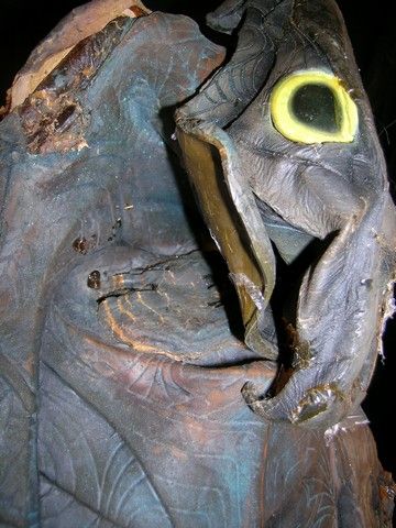 From the 1994 Roland Emmerich sci-fi-adventure 'Stargate' starring Kurt Russell and James Spader, this is one of the screen used prop creature costumes from the alien planet. In the film, Kurt Russell and James Spader are part of a military team that goes through a multi-dimensional 'Stargate' and emerges on an alien planet that resembles Earth during ancient Egyptian times, with the inhabitants under the tyrannical rule of the sun god Ra. The costume is for one of Ra's bird-head 'henchmen' on the alien planet and is made from multiple pieces of painted thick rubber. The costume has been in storage for many years and has become distressed with age, with some pieces stuck together, but is recognizable from the film. Oversized item. Additional Postage Required.