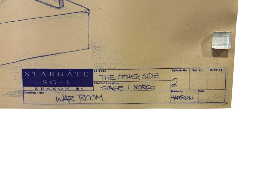 Original production blueprint from the episode "The Other Side" made for the military science fiction adventure television series 'Stargate SG-1' (1997-2007) where a secret military team, SG-1, is formed to explore other planets through the recently discovered Stargates. Starring Richard Dean Anderson, Michael Shanks, Amanda Tapping and Christopher Judge.