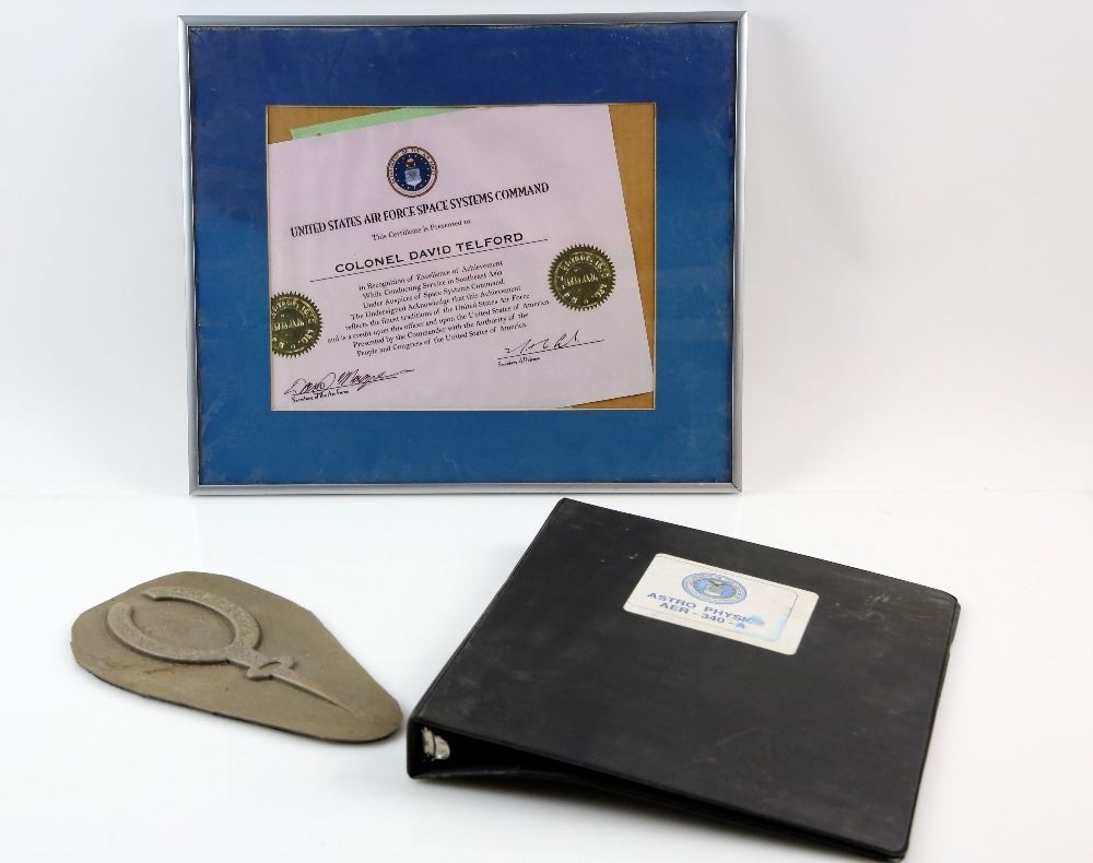 Stargate SG-1 (Canadian-American military science series, 1997-2007) - Colonel David Telford United States Air Force Systems Command certificate, astro physics folder and prop symbol embellishment..