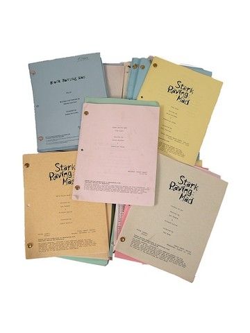 From the cult favorite TV series "Stark Raving Mad" here is an amazing collection. Virtually the entire history of the series, what with eighteen original production scripts including multiple version of the pilot scripts, plus original production call sheets.