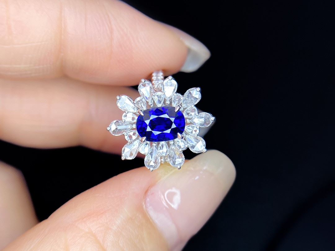The deep blue sapphire, encircled by radiant diamonds, shines like the brightest star in the night sky — a symbol of sincerity, serenity, and eternal love.Ring size: 6, circumference: 52 mm, diameter: 16.6 mm, sapphire: 1.785 ct,white diamonds: 0.625 ct. Note: Comes with an AGL certificate and a domestic jewelry identification certificate.