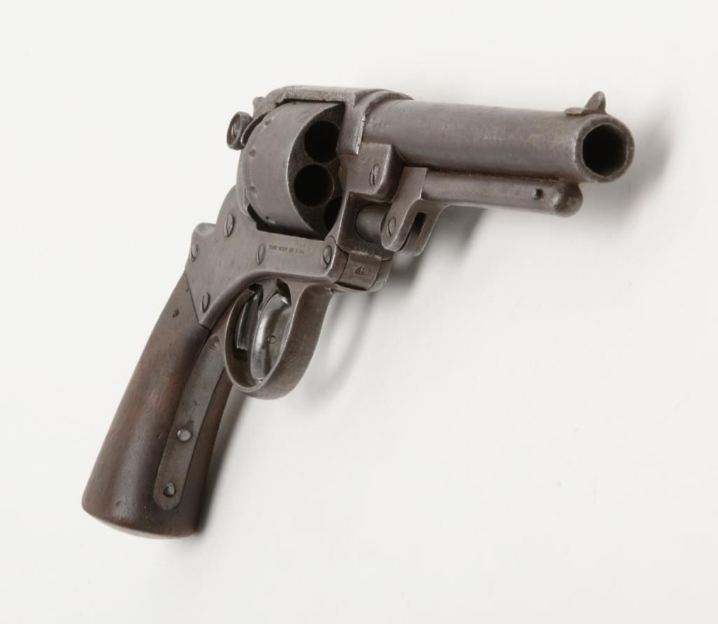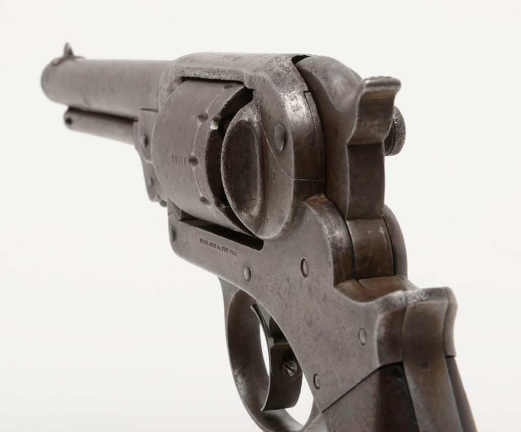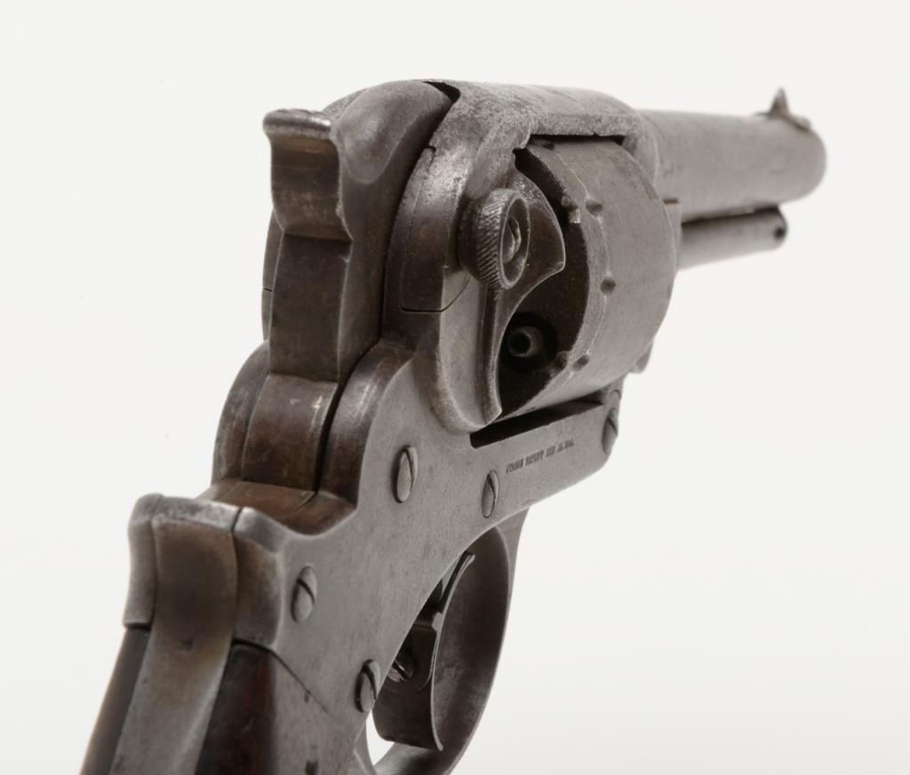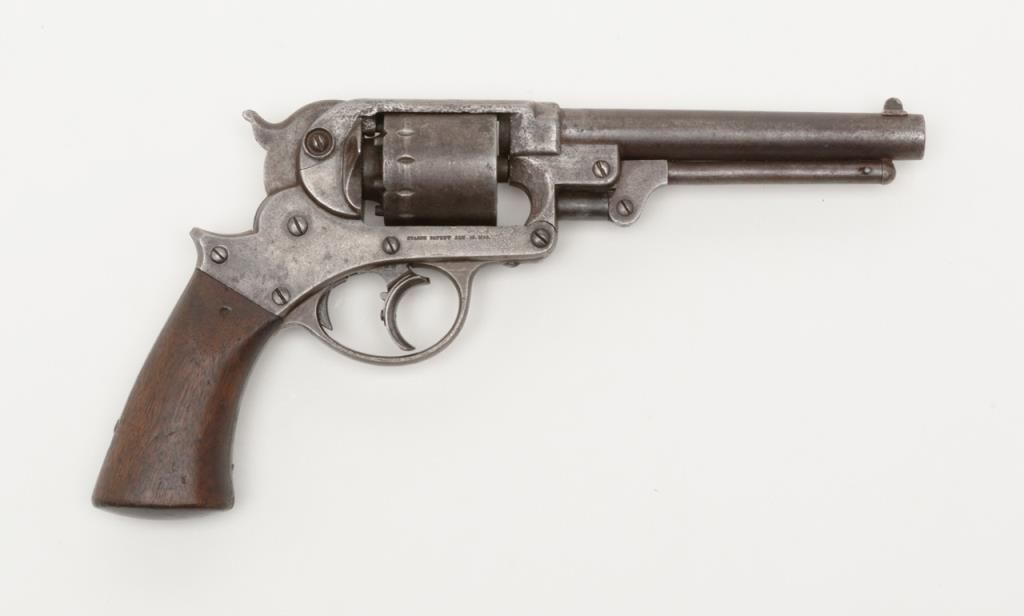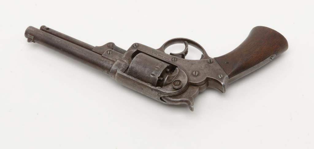 Starr double action .44 caliber percussion Civil War issued and martially marked revolver in good condition, serial number 21089. The metal surfaces show a gray to brown patina finish with traces of blue in protected areas. The metal surfaces showsome light to moderate scattered surface pitting and erosion. The markings are good on both sides of the frame and the edges and the action works well. The grips are good with a few dings, mars and scratches but uncommonly good bottom edge with no large losses and light but visible cartouches on both sides of the grips. The collection of William A. Gary consigned by his estate. Est.: $700-$1400