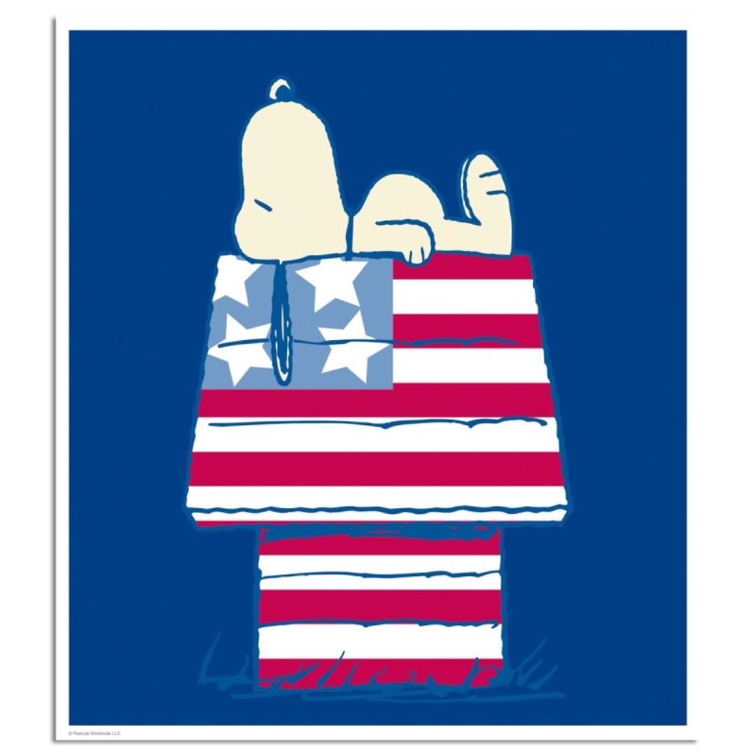 A vibrant and striking edition portraying the simple yet emotive art of Charles. M. Schulz creator of PEANUTS. Youll love the color it really POPS in person! It looks incredible on the wall and will be an important addition to any living space. "Stars and Stripes and Sleep" is an official Limited Edition Chromatic Pigment Ink Fine Art Print on paper created from the original artwork archived at the studio. Celebrating over 65 years of PEANUTS Heritage. Hand numbered includes Certificate of Authenticity. Measures approximately 26" x 24" and published to a strict edition of only 175 pieces.
