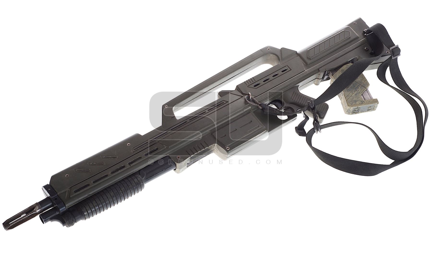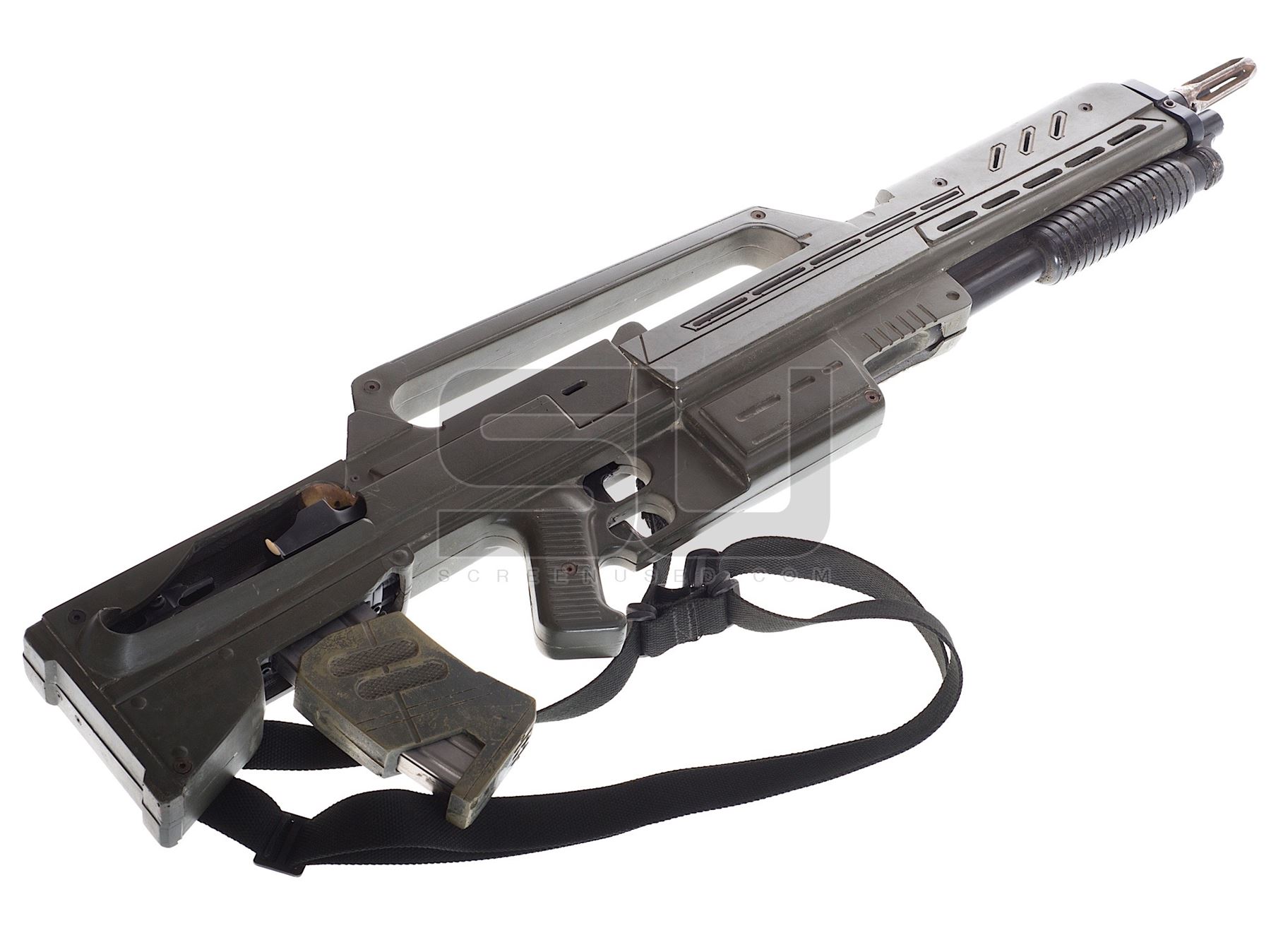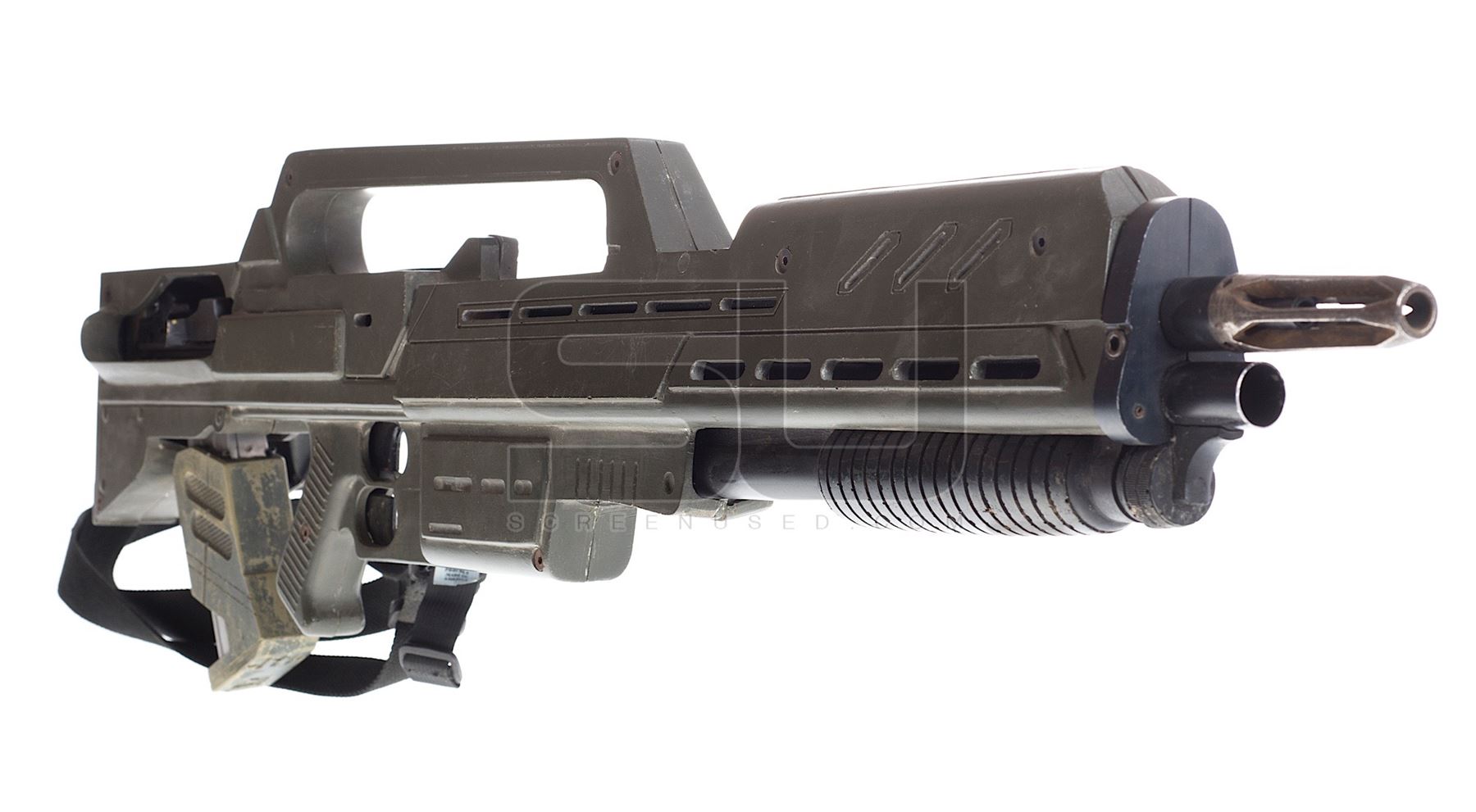 This prop hero nonfiring Morita assault rifle was custom-made by the production for use by various actors during filming. The rifle is constructed of fiberglass, resin and metal. The very detailed prop measures 41" in length and features an attached clip and custom pain. Wear from use is present, please see listing images for exact condition. This rifle still has it's original sling attached. Hero weapons like this rarely come to auction, making this a unique opportunity for collectors.
