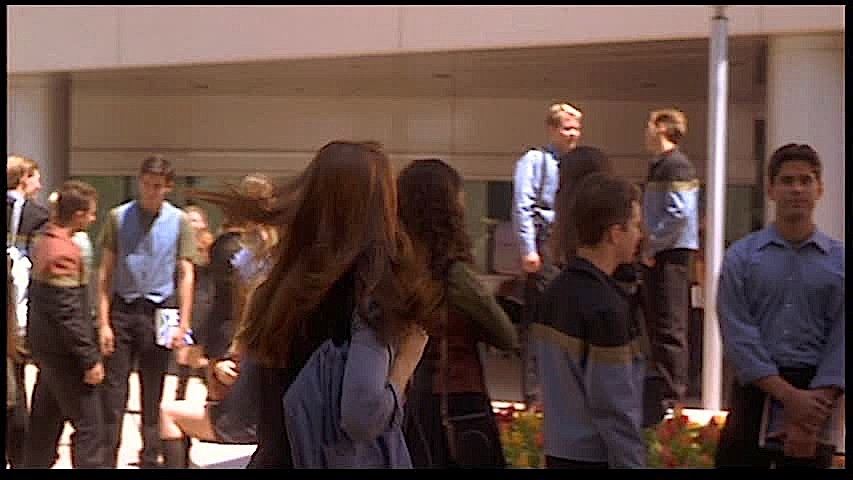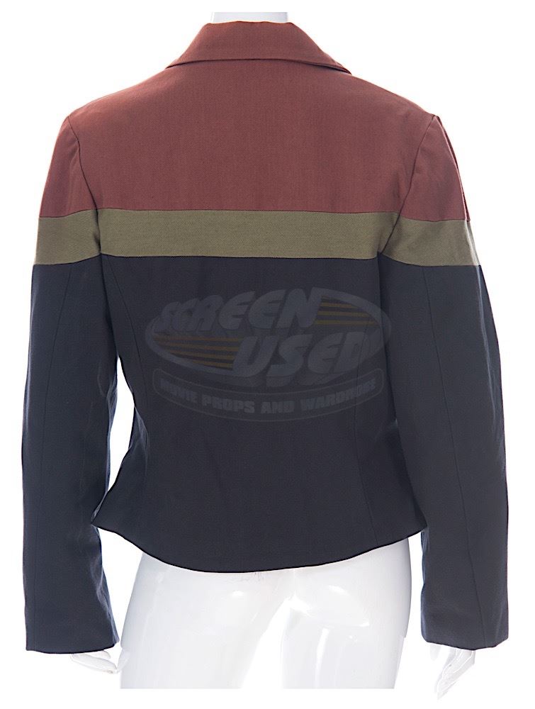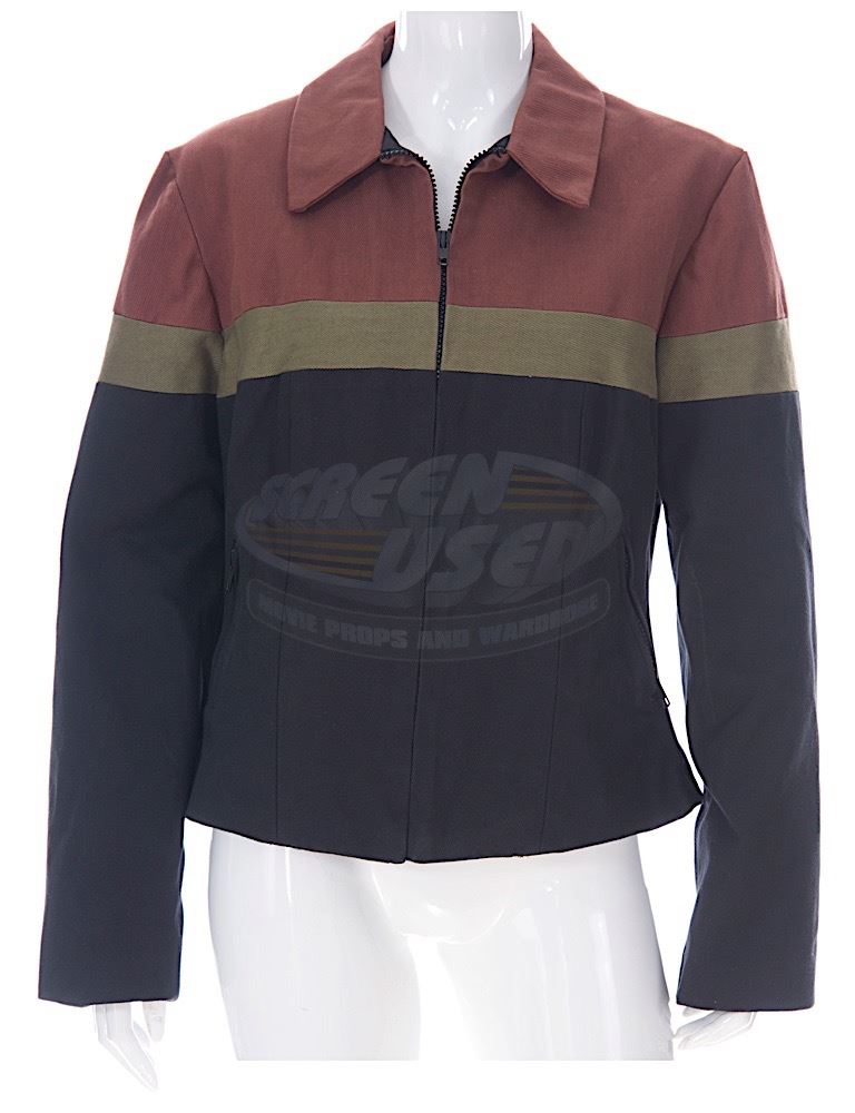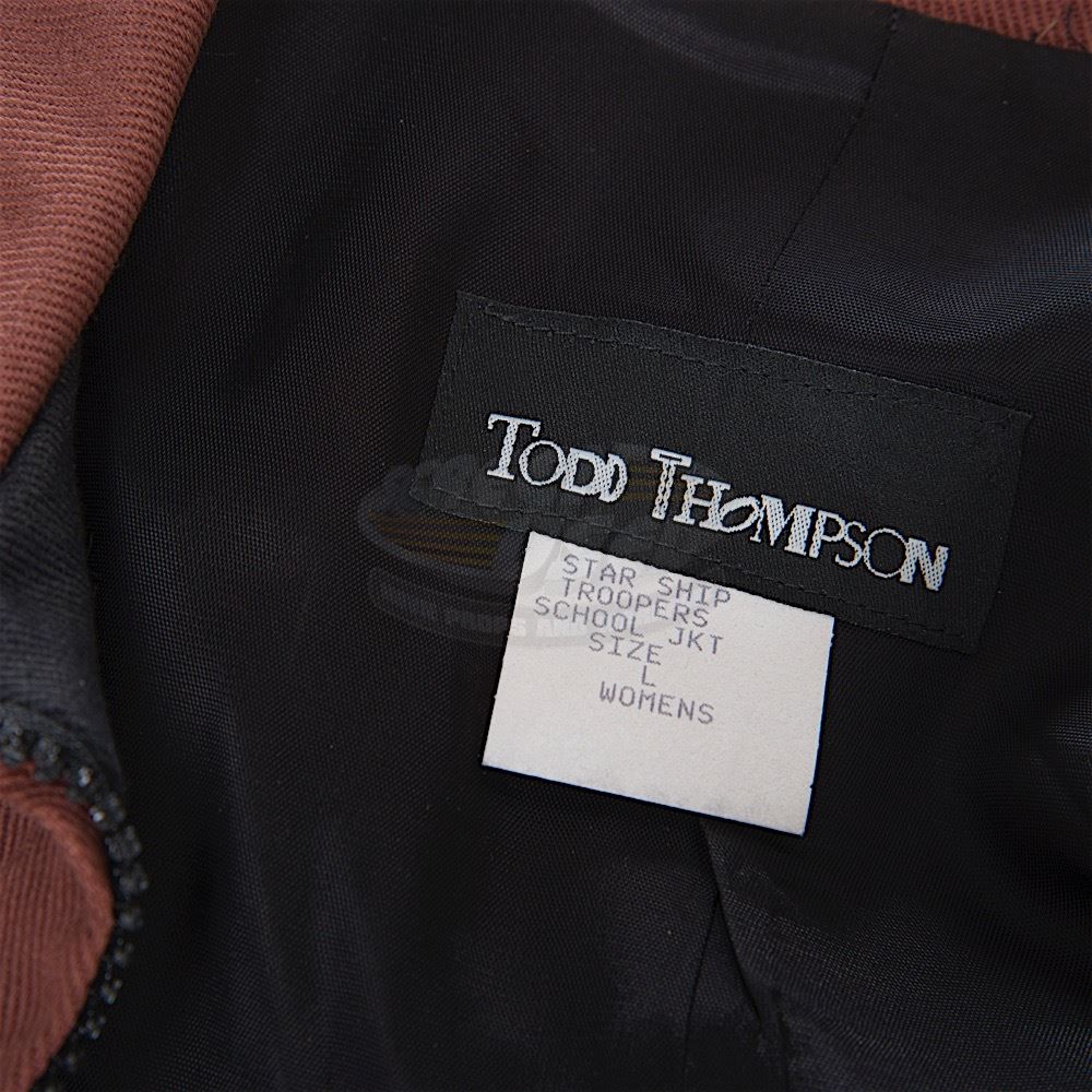 (TriStar Pictures, 1997) This jacket was custom-made by the production for use by an extra during filming. The jacket is a women's large and features a special "Starship Troopers" costume tag sewn into the collar. Minor wear from use is present.