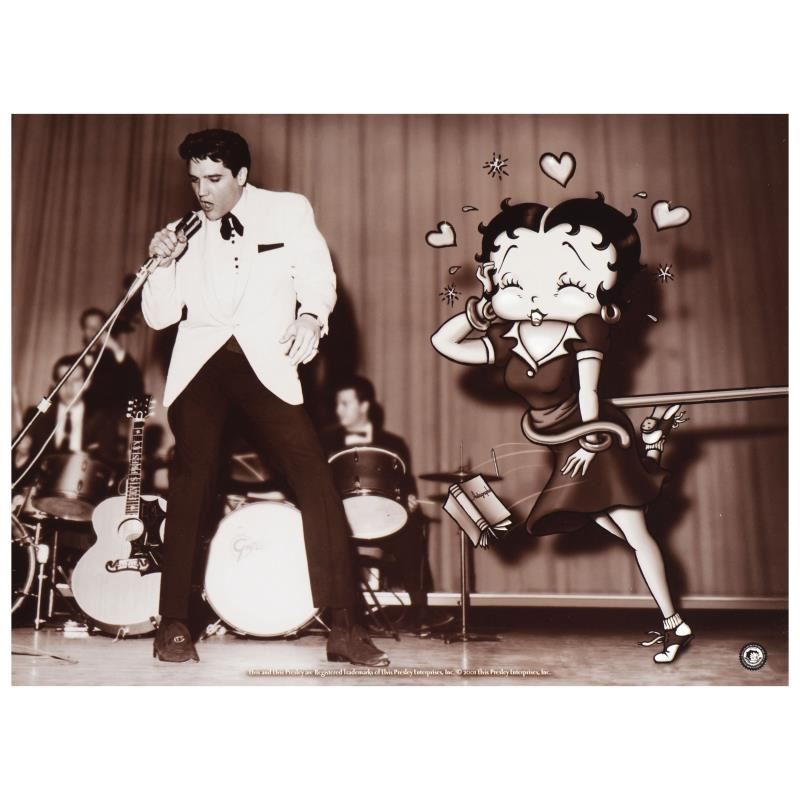 "Starstruck Betty" is a limited edition lithograph on paper featuring Betty Boop and Elvis Presley from King Features Syndicate, Inc, numbered and bearing King Features' official seal. Includes Certificate of Authenticity! Measures approx. 16" x 12" (image).