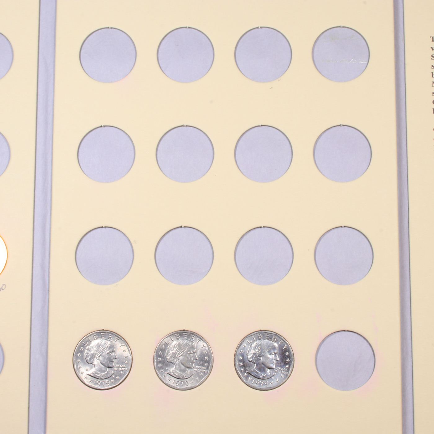 Starter Sacagawea & Susan B. Anthony Dollar Book 1979-2005 10 coins. A Nice starter Susan b. Anthony & Sacagawea Dollar Book. Included Dates for the Sacagawea Dollar are from 2000-2005. Also includes 3 1979 Susan B. Anthony Dollars. All coins encased in a Nice Littleton coin book. An Nice grouping of 10 coins. They are all uncs, 1 Proof Coins