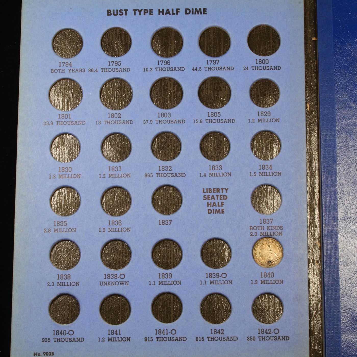 Starter Seated Liberty Half Dime Book 1840-1854 3 coins. A Starter Seated Liberty Half Dime Book. All coins are in a nice Whitman Book. This Book Contains 3 Holed Seated Half Dimes 1840, 1853, 1854
