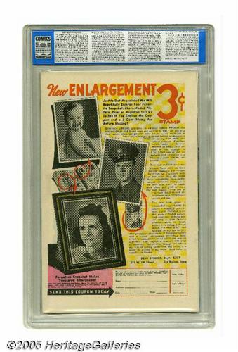 50. Auctioneer offers no opinion as to the validity of a grade assigned by any third-party grading service. Since we cannot examine C.G.A. encapsulated notes or Comics Guaranty Corporation (CGC) encapsulated comics, they are sold "as is" without our grading opinion, and may not be returned for any reason. Auctioneer shall not be liable for any patent or latent defect or controversy pertaining to or arising from any encapsulated collectible. In any such instance, purchaser's remedy, if any, shall be solely against the certification service certifying the collectible.