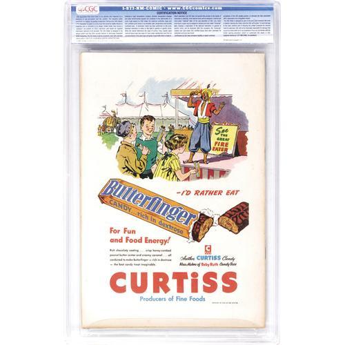 <B>Startling Comics #52 Davis Crippen ("D" Copy) pedigree (Better Publications, 1948) CGC VF+ 8.5 Off-white to white pages.</B></I> The second-to-last issue of this title meant the great run of airbrushed Alex Schomburg covers was also nearing the end. Great stuff, and here's a copy we'd say could pass for VF/NM at least... have a look at our scan and judge for yourself! Overstreet 2006 VF 8.0 value = $400; VF/NM 9.0 value = $618. CGC census 6/06: 1 in 8.5, 5 higher. <I>From the Crippen Collection.</B></I> <BR><BR><B>Important notice:</B> Heritage usually auctions material at the rate of 200-250 lots per hour. On some occasions eBay Live bid software or the Internet may not be able to keep up with the pace of the auction. We recommend placing a realistic absentee bid now as insurance to avoid disappointment. Occasionally the auctioneer may eliminate or reject an eBay Live bid, and the auctioneer may also reopen a lot after the close of the eBay live bidding (usually because we missed an audience bid), and may reject your bid even if it shows you as the winning bidder. By bidding via eBay Live, you agree that Heritage may award the lot to another bidder at its sole discretion under the circumstances described above or any other reasonable circumstances. Since eBay bids are not shown to us until we open the lot on the floor, we treat those bids just like floor bids. In most cases the floor responds before the eBay bid is presented to us, due to Internet lag time, so for consistency we have made it a policy that floor bids are always considered first over tie eBay live bids. Also please note that all Heritage lots purchased through eBay Live carry a 22.5% Buyer's Premium. Please make sure you read the Terms and Conditions before you bid. This lot is being auctioned in conjunction with a live floor auction by Heritage Auction Galleries. All final auction and invoice information will be supplied by Heritage Auction Galleries, and all other information should be considered preliminary. Lot:41001 <BR><BR><B>Winning Notification and Billing:</B> After the FINAL session in this auction is complete, Heritage will send e-mail and snail mail invoices. This process normally takes several days. All final auction and invoice information will be supplied by Heritage Auction Galleries, and all other information should be considered preliminary. <BR><BR>This auction will be conducted on a live auction floor and over the Internet through eBay Live. If you choose to place an absentee bid, please take a moment to <font color='#0000ff'><u><a href='http://pages.ebay.com/liveauctions/help/before/laabsentee.html'>learn how eBay Live absentee bidding works</a></u></font><font color='#000000'>