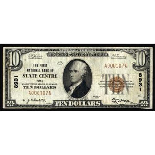 State Centre, IA. $10 1929 Ty. 1. The FNB. Charter #8931. Fine+.