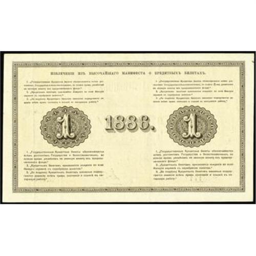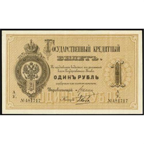 <style type="text/css"> body, td, th { font-family: Arial, Helvetica, sans-serif; font-size: 12px; color: #482424; margin: 0px; padding: 0px; } #header { background-image: url(http://www.bowersandmerena.com/ebay/images/template_v3_01.gif); clear: both; background-color: #590303; border-top-width: 2px; border-top-style: solid; border-top-color: #B38C4F; } #header #header_wrapper { height: 75px; clear: both; width: 800px; margin-right: auto; margin-left: auto; background-image: url(http://www.bowersandmerena.com/ebay/images/template_v3_03.gif); background-repeat: no-repeat; background-position: right; color: #F3EDCC; } #header #header_wrapper #header_logo { float: left; height: 75px; width: 444px; background-image: url(http://www.bowersandmerena.com/ebay/images/template_v3_02.gif); background-repeat: no-repeat; font-size: 10px; text-transform: capitalize; color: #B38C4F; } #header #header_wrapper #header_right { float: left; height: 75px; width: 356px; text-align: right; } #header #header_wrapper #header_right #headerLoginBtn { margin-bottom: 30px; } #header #header_wrapper #header_right input#txtSearch { color: #B49056; border: 1px solid #B49056; width: 175px; padding-top: 3px; padding-right: 3px; padding-bottom: 4px; padding-left: 3px; } #nav { height: 37px; background-image: url(http://www.bowersandmerena.com/ebay/images/template_v3_05.gif); clear: both; } #nav #nav_wrapper { height: 35px; width: 800px; margin-right: auto; margin-left: auto; border-left-width: 1px; border-left-style: solid; border-left-color: #B38C4F; } #nav #nav_wrapper a { padding-right: 15px; padding-left: 15px; border-right-width: 1px; border-right-style: solid; border-right-color: #B38C4F; height: 25px; padding-top: 10px; display: block; float: left; text-decoration: none; font-weight: bold; color: #5D0303; } #nav #nav_wrapper a:hover { color: #B38C4F; } #nav #nav_wrapper #search { float: right; padding-top: 7px; } #nav #nav_wrapper #search #txtSearch { font-family: Arial, Helvetica, sans-serif; font-size: 10px; text-transform: uppercase; color: #D2AE75; border: 1px solid #B38C4F; padding: 3px; } #content_bgd { background-image: url(http://www.bowersandmerena.com/ebay/images/template_v3_09.gif); background-repeat: repeat-y; background-position: center; padding-top: 15px; padding-bottom: 15px; background-color: #FBFBDB; } #content_wrapper { clear: both; height: auto; width: 800px; margin-right: auto; margin-left: auto; } .LotDetailWhite { line-height:normal; font-size:13px; font-family: arial,helvetica,sans-serif; color: White; font-weight: bold; } .LotDetailInformation { line-height:normal; font-size: 13px; font-family: arial,helvetica,sans-serif; } .LotDetailMessage { line-height:normal; font-size: 13px; font-family: arial,helvetica,sans-serif; color: red; } } tr.HeaderAuctionTitle td { color: #000000; font-weight: bold; padding: 2px; background-image: url(http://www.bowersandmerena.com/ebay/images/template_v3_05.gif); background-repeat: repeat-x; border-bottom-width: 1px; border-bottom-style: solid; border-bottom-color: #B38C4F; } table.AuctionSummary a, table.AuctionSummary a:link, table.AuctionSummary a:visited { color: #0000FF; text-decoration: none; } } td.tableHeaderLeft { border-left-width: 1px; border-left-style: solid; border-left-color: #B38C4F; } td.tableHeaderRight { border-right-width: 1px; border-right-style: solid; border-right-color: #B38C4F; } td.tableCellMiddle { border-left-width: 1px; border-left-style: solid; border-left-color: #B38C4F; border-right-width: 1px; border-right-style: solid; border-right-color: #B38C4F; padding: 5px; } tr.footer td { border-top-width: 1px; border-top-style: solid; border-top-color: #B38C4F; } </style> </head> <body> <div id="header"> <div id="header_wrapper"> <div id="header_logo"> </div> <div id="header_right"> </div> </div> </div> <div id="nav"> <div id="nav_wrapper"> <a href="http://www.bowersandmerena.com">Our eBayLive Auctions</a> <a href="#PaymentInfo">Payment Information</a> <a href="#ShippingInfo">Shipping Information</a> <a href="#About">About Bowers and Merena</a> </div> </div> <div id="content_bgd"> <div id="content_wrapper"> <table width="100%" border="0" cellpadding="5" cellspacing="0" class="AuctionSummary"> <tbody> <tr class="HeaderAuctionTitle" style="height: 25px;"> <td align="left" class="tableHeaderLeft" > </td> <td align="center" class="tableHeaderRight"> <span style="font-size: large;">Lot #2500. Imperial Russia. State Credit Notes, 1882-86 Issue.</span> </td> </tr> <tr> <td colspan="3" class="tableCellMiddle"> 1886, 1 Ruble, P-A48, XF+ condition. Rare in high grade.