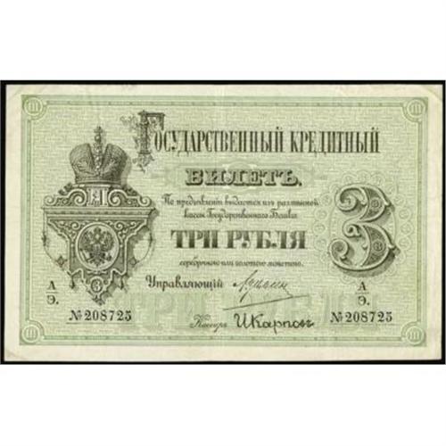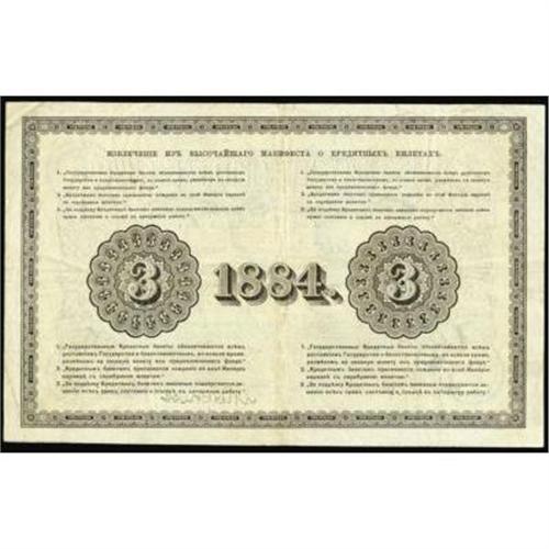 <style type="text/css"> body, td, th { font-family: Arial, Helvetica, sans-serif; font-size: 12px; color: #482424; margin: 0px; padding: 0px; } #header { background-image: url(http://www.bowersandmerena.com/ebay/images/template_v3_01.gif); clear: both; background-color: #590303; border-top-width: 2px; border-top-style: solid; border-top-color: #B38C4F; } #header #header_wrapper { height: 75px; clear: both; width: 800px; margin-right: auto; margin-left: auto; background-image: url(http://www.bowersandmerena.com/ebay/images/template_v3_03.gif); background-repeat: no-repeat; background-position: right; color: #F3EDCC; } #header #header_wrapper #header_logo { float: left; height: 75px; width: 444px; background-image: url(http://www.bowersandmerena.com/ebay/images/template_v3_02.gif); background-repeat: no-repeat; font-size: 10px; text-transform: capitalize; color: #B38C4F; } #header #header_wrapper #header_right { float: left; height: 75px; width: 356px; text-align: right; } #header #header_wrapper #header_right #headerLoginBtn { margin-bottom: 30px; } #header #header_wrapper #header_right input#txtSearch { color: #B49056; border: 1px solid #B49056; width: 175px; padding-top: 3px; padding-right: 3px; padding-bottom: 4px; padding-left: 3px; } #nav { height: 37px; background-image: url(http://www.bowersandmerena.com/ebay/images/template_v3_05.gif); clear: both; } #nav #nav_wrapper { height: 35px; width: 800px; margin-right: auto; margin-left: auto; border-left-width: 1px; border-left-style: solid; border-left-color: #B38C4F; } #nav #nav_wrapper a { padding-right: 15px; padding-left: 15px; border-right-width: 1px; border-right-style: solid; border-right-color: #B38C4F; height: 25px; padding-top: 10px; display: block; float: left; text-decoration: none; font-weight: bold; color: #5D0303; } #nav #nav_wrapper a:hover { color: #B38C4F; } #nav #nav_wrapper #search { float: right; padding-top: 7px; } #nav #nav_wrapper #search #txtSearch { font-family: Arial, Helvetica, sans-serif; font-size: 10px; text-transform: uppercase; color: #D2AE75; border: 1px solid #B38C4F; padding: 3px; } #content_bgd { background-image: url(http://www.bowersandmerena.com/ebay/images/template_v3_09.gif); background-repeat: repeat-y; background-position: center; padding-top: 15px; padding-bottom: 15px; background-color: #FBFBDB; } #content_wrapper { clear: both; height: auto; width: 800px; margin-right: auto; margin-left: auto; } .LotDetailWhite { line-height:normal; font-size:13px; font-family: arial,helvetica,sans-serif; color: White; font-weight: bold; } .LotDetailInformation { line-height:normal; font-size: 13px; font-family: arial,helvetica,sans-serif; } .LotDetailMessage { line-height:normal; font-size: 13px; font-family: arial,helvetica,sans-serif; color: red; } } tr.HeaderAuctionTitle td { color: #000000; font-weight: bold; padding: 2px; background-image: url(http://www.bowersandmerena.com/ebay/images/template_v3_05.gif); background-repeat: repeat-x; border-bottom-width: 1px; border-bottom-style: solid; border-bottom-color: #B38C4F; } table.AuctionSummary a, table.AuctionSummary a:link, table.AuctionSummary a:visited { color: #0000FF; text-decoration: none; } } td.tableHeaderLeft { border-left-width: 1px; border-left-style: solid; border-left-color: #B38C4F; } td.tableHeaderRight { border-right-width: 1px; border-right-style: solid; border-right-color: #B38C4F; } td.tableCellMiddle { border-left-width: 1px; border-left-style: solid; border-left-color: #B38C4F; border-right-width: 1px; border-right-style: solid; border-right-color: #B38C4F; padding: 5px; } tr.footer td { border-top-width: 1px; border-top-style: solid; border-top-color: #B38C4F; } </style> </head> <body> <div id="header"> <div id="header_wrapper"> <div id="header_logo"> </div> <div id="header_right"> </div> </div> </div> <div id="nav"> <div id="nav_wrapper"> <a href="http://www.bowersandmerena.com">Our eBayLive Auctions</a> <a href="#PaymentInfo">Payment Information</a> <a href="#ShippingInfo">Shipping Information</a> <a href="#About">About Bowers and Merena</a> </div> </div> <div id="content_bgd"> <div id="content_wrapper"> <table width="100%" border="0" cellpadding="5" cellspacing="0" class="AuctionSummary"> <tbody> <tr class="HeaderAuctionTitle" style="height: 25px;"> <td align="left" class="tableHeaderLeft" > </td> <td align="center" class="tableHeaderRight"> <span style="font-size: large;">Lot #2501. Imperial Russia. State Credit Notes, 1882-86 Issue.</span> </td> </tr> <tr> <td colspan="3" class="tableCellMiddle"> 1884, 3 Rubles, P-A49, XF with appearances of XF+ condition. Rare and desirable note.