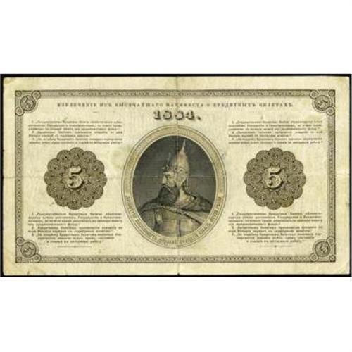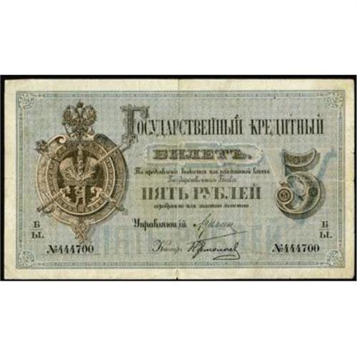 <style type="text/css"> body, td, th { font-family: Arial, Helvetica, sans-serif; font-size: 12px; color: #482424; margin: 0px; padding: 0px; } #header { background-image: url(http://www.bowersandmerena.com/ebay/images/template_v3_01.gif); clear: both; background-color: #590303; border-top-width: 2px; border-top-style: solid; border-top-color: #B38C4F; } #header #header_wrapper { height: 75px; clear: both; width: 800px; margin-right: auto; margin-left: auto; background-image: url(http://www.bowersandmerena.com/ebay/images/template_v3_03.gif); background-repeat: no-repeat; background-position: right; color: #F3EDCC; } #header #header_wrapper #header_logo { float: left; height: 75px; width: 444px; background-image: url(http://www.bowersandmerena.com/ebay/images/template_v3_02.gif); background-repeat: no-repeat; font-size: 10px; text-transform: capitalize; color: #B38C4F; } #header #header_wrapper #header_right { float: left; height: 75px; width: 356px; text-align: right; } #header #header_wrapper #header_right #headerLoginBtn { margin-bottom: 30px; } #header #header_wrapper #header_right input#txtSearch { color: #B49056; border: 1px solid #B49056; width: 175px; padding-top: 3px; padding-right: 3px; padding-bottom: 4px; padding-left: 3px; } #nav { height: 37px; background-image: url(http://www.bowersandmerena.com/ebay/images/template_v3_05.gif); clear: both; } #nav #nav_wrapper { height: 35px; width: 800px; margin-right: auto; margin-left: auto; border-left-width: 1px; border-left-style: solid; border-left-color: #B38C4F; } #nav #nav_wrapper a { padding-right: 15px; padding-left: 15px; border-right-width: 1px; border-right-style: solid; border-right-color: #B38C4F; height: 25px; padding-top: 10px; display: block; float: left; text-decoration: none; font-weight: bold; color: #5D0303; } #nav #nav_wrapper a:hover { color: #B38C4F; } #nav #nav_wrapper #search { float: right; padding-top: 7px; } #nav #nav_wrapper #search #txtSearch { font-family: Arial, Helvetica, sans-serif; font-size: 10px; text-transform: uppercase; color: #D2AE75; border: 1px solid #B38C4F; padding: 3px; } #content_bgd { background-image: url(http://www.bowersandmerena.com/ebay/images/template_v3_09.gif); background-repeat: repeat-y; background-position: center; padding-top: 15px; padding-bottom: 15px; background-color: #FBFBDB; } #content_wrapper { clear: both; height: auto; width: 800px; margin-right: auto; margin-left: auto; } .LotDetailWhite { line-height:normal; font-size:13px; font-family: arial,helvetica,sans-serif; color: White; font-weight: bold; } .LotDetailInformation { line-height:normal; font-size: 13px; font-family: arial,helvetica,sans-serif; } .LotDetailMessage { line-height:normal; font-size: 13px; font-family: arial,helvetica,sans-serif; color: red; } } tr.HeaderAuctionTitle td { color: #000000; font-weight: bold; padding: 2px; background-image: url(http://www.bowersandmerena.com/ebay/images/template_v3_05.gif); background-repeat: repeat-x; border-bottom-width: 1px; border-bottom-style: solid; border-bottom-color: #B38C4F; } table.AuctionSummary a, table.AuctionSummary a:link, table.AuctionSummary a:visited { color: #0000FF; text-decoration: none; } } td.tableHeaderLeft { border-left-width: 1px; border-left-style: solid; border-left-color: #B38C4F; } td.tableHeaderRight { border-right-width: 1px; border-right-style: solid; border-right-color: #B38C4F; } td.tableCellMiddle { border-left-width: 1px; border-left-style: solid; border-left-color: #B38C4F; border-right-width: 1px; border-right-style: solid; border-right-color: #B38C4F; padding: 5px; } tr.footer td { border-top-width: 1px; border-top-style: solid; border-top-color: #B38C4F; } </style> </head> <body> <div id="header"> <div id="header_wrapper"> <div id="header_logo"> </div> <div id="header_right"> </div> </div> </div> <div id="nav"> <div id="nav_wrapper"> <a href="http://www.bowersandmerena.com">Our eBayLive Auctions</a> <a href="#PaymentInfo">Payment Information</a> <a href="#ShippingInfo">Shipping Information</a> <a href="#About">About Bowers and Merena</a> </div> </div> <div id="content_bgd"> <div id="content_wrapper"> <table width="100%" border="0" cellpadding="5" cellspacing="0" class="AuctionSummary"> <tbody> <tr class="HeaderAuctionTitle" style="height: 25px;"> <td align="left" class="tableHeaderLeft" > </td> <td align="center" class="tableHeaderRight"> <span style="font-size: large;">Lot #2503. Imperial Russia. State Credit Notes, 1882-86 Issue.</span> </td> </tr> <tr> <td colspan="3" class="tableCellMiddle"> 1884, 5 Rubles, P-A50, Fine+ to VF condition.