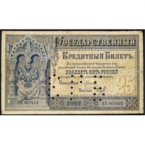 <style type="text/css"> body, td, th { font-family: Arial, Helvetica, sans-serif; font-size: 12px; color: #482424; margin: 0px; padding: 0px; } #header { background-image: url(http://www.bowersandmerena.com/ebay/images/template_v3_01.gif); clear: both; background-color: #590303; border-top-width: 2px; border-top-style: solid; border-top-color: #B38C4F; } #header #header_wrapper { height: 75px; clear: both; width: 800px; margin-right: auto; margin-left: auto; background-image: url(http://www.bowersandmerena.com/ebay/images/template_v3_03.gif); background-repeat: no-repeat; background-position: right; color: #F3EDCC; } #header #header_wrapper #header_logo { float: left; height: 75px; width: 444px; background-image: url(http://www.bowersandmerena.com/ebay/images/template_v3_02.gif); background-repeat: no-repeat; font-size: 10px; text-transform: capitalize; color: #B38C4F; } #header #header_wrapper #header_right { float: left; height: 75px; width: 356px; text-align: right; } #header #header_wrapper #header_right #headerLoginBtn { margin-bottom: 30px; } #header #header_wrapper #header_right input#txtSearch { color: #B49056; border: 1px solid #B49056; width: 175px; padding-top: 3px; padding-right: 3px; padding-bottom: 4px; padding-left: 3px; } #nav { height: 37px; background-image: url(http://www.bowersandmerena.com/ebay/images/template_v3_05.gif); clear: both; } #nav #nav_wrapper { height: 35px; width: 800px; margin-right: auto; margin-left: auto; border-left-width: 1px; border-left-style: solid; border-left-color: #B38C4F; } #nav #nav_wrapper a { padding-right: 15px; padding-left: 15px; border-right-width: 1px; border-right-style: solid; border-right-color: #B38C4F; height: 25px; padding-top: 10px; display: block; float: left; text-decoration: none; font-weight: bold; color: #5D0303; } #nav #nav_wrapper a:hover { color: #B38C4F; } #nav #nav_wrapper #search { float: right; padding-top: 7px; } #nav #nav_wrapper #search #txtSearch { font-family: Arial, Helvetica, sans-serif; font-size: 10px; text-transform: uppercase; color: #D2AE75; border: 1px solid #B38C4F; padding: 3px; } #content_bgd { background-image: url(http://www.bowersandmerena.com/ebay/images/template_v3_09.gif); background-repeat: repeat-y; background-position: center; padding-top: 15px; padding-bottom: 15px; background-color: #FBFBDB; } #content_wrapper { clear: both; height: auto; width: 800px; margin-right: auto; margin-left: auto; } .LotDetailWhite { line-height:normal; font-size:13px; font-family: arial,helvetica,sans-serif; color: White; font-weight: bold; } .LotDetailInformation { line-height:normal; font-size: 13px; font-family: arial,helvetica,sans-serif; } .LotDetailMessage { line-height:normal; font-size: 13px; font-family: arial,helvetica,sans-serif; color: red; } } tr.HeaderAuctionTitle td { color: #000000; font-weight: bold; padding: 2px; background-image: url(http://www.bowersandmerena.com/ebay/images/template_v3_05.gif); background-repeat: repeat-x; border-bottom-width: 1px; border-bottom-style: solid; border-bottom-color: #B38C4F; } table.AuctionSummary a, table.AuctionSummary a:link, table.AuctionSummary a:visited { color: #0000FF; text-decoration: none; } } td.tableHeaderLeft { border-left-width: 1px; border-left-style: solid; border-left-color: #B38C4F; } td.tableHeaderRight { border-right-width: 1px; border-right-style: solid; border-right-color: #B38C4F; } td.tableCellMiddle { border-left-width: 1px; border-left-style: solid; border-left-color: #B38C4F; border-right-width: 1px; border-right-style: solid; border-right-color: #B38C4F; padding: 5px; } tr.footer td { border-top-width: 1px; border-top-style: solid; border-top-color: #B38C4F; } </style> </head> <body> <div id="header"> <div id="header_wrapper"> <div id="header_logo"> </div> <div id="header_right"> </div> </div> </div> <div id="nav"> <div id="nav_wrapper"> <a href="http://www.bowersandmerena.com">Our eBayLive Auctions</a> <a href="#PaymentInfo">Payment Information</a> <a href="#ShippingInfo">Shipping Information</a> <a href="#About">About Bowers and Merena</a> </div> </div> <div id="content_bgd"> <div id="content_wrapper"> <table width="100%" border="0" cellpadding="5" cellspacing="0" class="AuctionSummary"> <tbody> <tr class="HeaderAuctionTitle" style="height: 25px;"> <td align="left" class="tableHeaderLeft" > </td> <td align="center" class="tableHeaderRight"> <span style="font-size: large;">Lot #2508. Imperial Russia. State Credit Notes, 1887-94 Issue.</span> </td> </tr> <tr> <td colspan="3" class="tableCellMiddle"> 1887, 25 Rubles, P-A59, Fine condition. Unpriced in SCWPM. Pin punch cancelled. Rare note in any condition.
