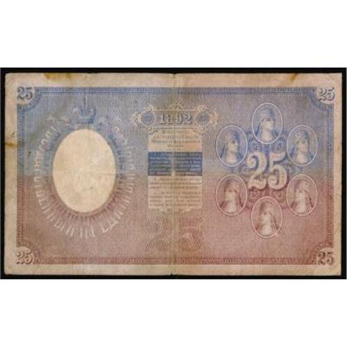 <style type="text/css"> body, td, th { font-family: Arial, Helvetica, sans-serif; font-size: 12px; color: #482424; margin: 0px; padding: 0px; } #header { background-image: url(http://www.bowersandmerena.com/ebay/images/template_v3_01.gif); clear: both; background-color: #590303; border-top-width: 2px; border-top-style: solid; border-top-color: #B38C4F; } #header #header_wrapper { height: 75px; clear: both; width: 800px; margin-right: auto; margin-left: auto; background-image: url(http://www.bowersandmerena.com/ebay/images/template_v3_03.gif); background-repeat: no-repeat; background-position: right; color: #F3EDCC; } #header #header_wrapper #header_logo { float: left; height: 75px; width: 444px; background-image: url(http://www.bowersandmerena.com/ebay/images/template_v3_02.gif); background-repeat: no-repeat; font-size: 10px; text-transform: capitalize; color: #B38C4F; } #header #header_wrapper #header_right { float: left; height: 75px; width: 356px; text-align: right; } #header #header_wrapper #header_right #headerLoginBtn { margin-bottom: 30px; } #header #header_wrapper #header_right input#txtSearch { color: #B49056; border: 1px solid #B49056; width: 175px; padding-top: 3px; padding-right: 3px; padding-bottom: 4px; padding-left: 3px; } #nav { height: 37px; background-image: url(http://www.bowersandmerena.com/ebay/images/template_v3_05.gif); clear: both; } #nav #nav_wrapper { height: 35px; width: 800px; margin-right: auto; margin-left: auto; border-left-width: 1px; border-left-style: solid; border-left-color: #B38C4F; } #nav #nav_wrapper a { padding-right: 15px; padding-left: 15px; border-right-width: 1px; border-right-style: solid; border-right-color: #B38C4F; height: 25px; padding-top: 10px; display: block; float: left; text-decoration: none; font-weight: bold; color: #5D0303; } #nav #nav_wrapper a:hover { color: #B38C4F; } #nav #nav_wrapper #search { float: right; padding-top: 7px; } #nav #nav_wrapper #search #txtSearch { font-family: Arial, Helvetica, sans-serif; font-size: 10px; text-transform: uppercase; color: #D2AE75; border: 1px solid #B38C4F; padding: 3px; } #content_bgd { background-image: url(http://www.bowersandmerena.com/ebay/images/template_v3_09.gif); background-repeat: repeat-y; background-position: center; padding-top: 15px; padding-bottom: 15px; background-color: #FBFBDB; } #content_wrapper { clear: both; height: auto; width: 800px; margin-right: auto; margin-left: auto; } .LotDetailWhite { line-height:normal; font-size:13px; font-family: arial,helvetica,sans-serif; color: White; font-weight: bold; } .LotDetailInformation { line-height:normal; font-size: 13px; font-family: arial,helvetica,sans-serif; } .LotDetailMessage { line-height:normal; font-size: 13px; font-family: arial,helvetica,sans-serif; color: red; } } tr.HeaderAuctionTitle td { color: #000000; font-weight: bold; padding: 2px; background-image: url(http://www.bowersandmerena.com/ebay/images/template_v3_05.gif); background-repeat: repeat-x; border-bottom-width: 1px; border-bottom-style: solid; border-bottom-color: #B38C4F; } table.AuctionSummary a, table.AuctionSummary a:link, table.AuctionSummary a:visited { color: #0000FF; text-decoration: none; } } td.tableHeaderLeft { border-left-width: 1px; border-left-style: solid; border-left-color: #B38C4F; } td.tableHeaderRight { border-right-width: 1px; border-right-style: solid; border-right-color: #B38C4F; } td.tableCellMiddle { border-left-width: 1px; border-left-style: solid; border-left-color: #B38C4F; border-right-width: 1px; border-right-style: solid; border-right-color: #B38C4F; padding: 5px; } tr.footer td { border-top-width: 1px; border-top-style: solid; border-top-color: #B38C4F; } </style> </head> <body> <div id="header"> <div id="header_wrapper"> <div id="header_logo"> </div> <div id="header_right"> </div> </div> </div> <div id="nav"> <div id="nav_wrapper"> <a href="http://www.bowersandmerena.com">Our eBayLive Auctions</a> <a href="#PaymentInfo">Payment Information</a> <a href="#ShippingInfo">Shipping Information</a> <a href="#About">About Bowers and Merena</a> </div> </div> <div id="content_bgd"> <div id="content_wrapper"> <table width="100%" border="0" cellpadding="5" cellspacing="0" class="AuctionSummary"> <tbody> <tr class="HeaderAuctionTitle" style="height: 25px;"> <td align="left" class="tableHeaderLeft" > </td> <td align="center" class="tableHeaderRight"> <span style="font-size: large;">Lot #2509. Imperial Russia. State Credit Notes, 1890 Issue.</span> </td> </tr> <tr> <td colspan="3" class="tableCellMiddle"> 1892, 25 Rubles, P-A60Aa, Pleske signature. VF to VF+ condition with toning on top margin a couple of small areas. Exceptional note.