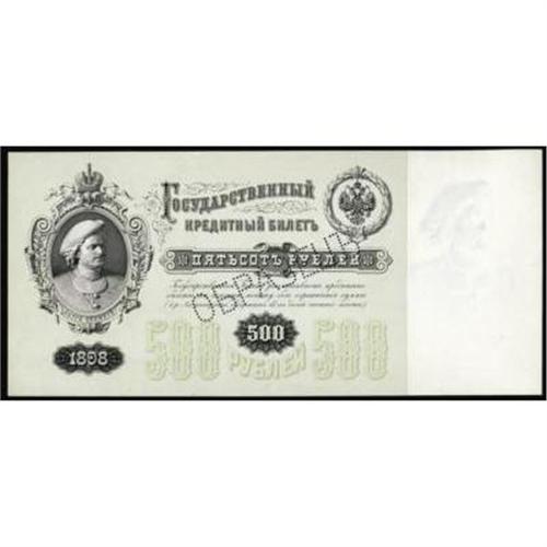 <style type="text/css"> body, td, th { font-family: Arial, Helvetica, sans-serif; font-size: 12px; color: #482424; margin: 0px; padding: 0px; } #header { background-image: url(http://www.bowersandmerena.com/ebay/images/template_v3_01.gif); clear: both; background-color: #590303; border-top-width: 2px; border-top-style: solid; border-top-color: #B38C4F; } #header #header_wrapper { height: 75px; clear: both; width: 800px; margin-right: auto; margin-left: auto; background-image: url(http://www.bowersandmerena.com/ebay/images/template_v3_03.gif); background-repeat: no-repeat; background-position: right; color: #F3EDCC; } #header #header_wrapper #header_logo { float: left; height: 75px; width: 444px; background-image: url(http://www.bowersandmerena.com/ebay/images/template_v3_02.gif); background-repeat: no-repeat; font-size: 10px; text-transform: capitalize; color: #B38C4F; } #header #header_wrapper #header_right { float: left; height: 75px; width: 356px; text-align: right; } #header #header_wrapper #header_right #headerLoginBtn { margin-bottom: 30px; } #header #header_wrapper #header_right input#txtSearch { color: #B49056; border: 1px solid #B49056; width: 175px; padding-top: 3px; padding-right: 3px; padding-bottom: 4px; padding-left: 3px; } #nav { height: 37px; background-image: url(http://www.bowersandmerena.com/ebay/images/template_v3_05.gif); clear: both; } #nav #nav_wrapper { height: 35px; width: 800px; margin-right: auto; margin-left: auto; border-left-width: 1px; border-left-style: solid; border-left-color: #B38C4F; } #nav #nav_wrapper a { padding-right: 15px; padding-left: 15px; border-right-width: 1px; border-right-style: solid; border-right-color: #B38C4F; height: 25px; padding-top: 10px; display: block; float: left; text-decoration: none; font-weight: bold; color: #5D0303; } #nav #nav_wrapper a:hover { color: #B38C4F; } #nav #nav_wrapper #search { float: right; padding-top: 7px; } #nav #nav_wrapper #search #txtSearch { font-family: Arial, Helvetica, sans-serif; font-size: 10px; text-transform: uppercase; color: #D2AE75; border: 1px solid #B38C4F; padding: 3px; } #content_bgd { background-image: url(http://www.bowersandmerena.com/ebay/images/template_v3_09.gif); background-repeat: repeat-y; background-position: center; padding-top: 15px; padding-bottom: 15px; background-color: #FBFBDB; } #content_wrapper { clear: both; height: auto; width: 800px; margin-right: auto; margin-left: auto; } .LotDetailWhite { line-height:normal; font-size:13px; font-family: arial,helvetica,sans-serif; color: White; font-weight: bold; } .LotDetailInformation { line-height:normal; font-size: 13px; font-family: arial,helvetica,sans-serif; } .LotDetailMessage { line-height:normal; font-size: 13px; font-family: arial,helvetica,sans-serif; color: red; } } tr.HeaderAuctionTitle td { color: #000000; font-weight: bold; padding: 2px; background-image: url(http://www.bowersandmerena.com/ebay/images/template_v3_05.gif); background-repeat: repeat-x; border-bottom-width: 1px; border-bottom-style: solid; border-bottom-color: #B38C4F; } table.AuctionSummary a, table.AuctionSummary a:link, table.AuctionSummary a:visited { color: #0000FF; text-decoration: none; } } td.tableHeaderLeft { border-left-width: 1px; border-left-style: solid; border-left-color: #B38C4F; } td.tableHeaderRight { border-right-width: 1px; border-right-style: solid; border-right-color: #B38C4F; } td.tableCellMiddle { border-left-width: 1px; border-left-style: solid; border-left-color: #B38C4F; border-right-width: 1px; border-right-style: solid; border-right-color: #B38C4F; padding: 5px; } tr.footer td { border-top-width: 1px; border-top-style: solid; border-top-color: #B38C4F; } </style> </head> <body> <div id="header"> <div id="header_wrapper"> <div id="header_logo"> </div> <div id="header_right"> </div> </div> </div> <div id="nav"> <div id="nav_wrapper"> <a href="http://www.bowersandmerena.com">Our eBayLive Auctions</a> <a href="#PaymentInfo">Payment Information</a> <a href="#ShippingInfo">Shipping Information</a> <a href="#About">About Bowers and Merena</a> </div> </div> <div id="content_bgd"> <div id="content_wrapper"> <table width="100%" border="0" cellpadding="5" cellspacing="0" class="AuctionSummary"> <tbody> <tr class="HeaderAuctionTitle" style="height: 25px;"> <td align="left" class="tableHeaderLeft" > </td> <td align="center" class="tableHeaderRight"> <span style="font-size: large;">Lot #2560. Imperial Russia. State Credit Notes, 1898 Issue Specimen.</span> </td> </tr> <tr> <td colspan="3" class="tableCellMiddle"> Uniface Specimen Banknote face and back. 1898, 500 Rubles, P-6s., Unc. to CU condition. No signatures. A prize note that is rarely seen in even the most complete collections.