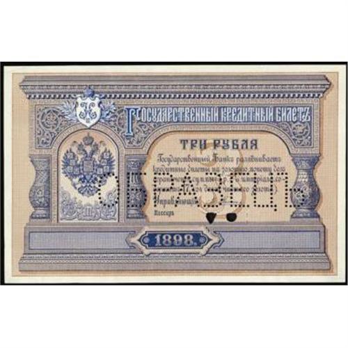 <style type="text/css"> body, td, th { font-family: Arial, Helvetica, sans-serif; font-size: 12px; color: #482424; margin: 0px; padding: 0px; } #header { background-image: url(http://www.bowersandmerena.com/ebay/images/template_v3_01.gif); clear: both; background-color: #590303; border-top-width: 2px; border-top-style: solid; border-top-color: #B38C4F; } #header #header_wrapper { height: 75px; clear: both; width: 800px; margin-right: auto; margin-left: auto; background-image: url(http://www.bowersandmerena.com/ebay/images/template_v3_03.gif); background-repeat: no-repeat; background-position: right; color: #F3EDCC; } #header #header_wrapper #header_logo { float: left; height: 75px; width: 444px; background-image: url(http://www.bowersandmerena.com/ebay/images/template_v3_02.gif); background-repeat: no-repeat; font-size: 10px; text-transform: capitalize; color: #B38C4F; } #header #header_wrapper #header_right { float: left; height: 75px; width: 356px; text-align: right; } #header #header_wrapper #header_right #headerLoginBtn { margin-bottom: 30px; } #header #header_wrapper #header_right input#txtSearch { color: #B49056; border: 1px solid #B49056; width: 175px; padding-top: 3px; padding-right: 3px; padding-bottom: 4px; padding-left: 3px; } #nav { height: 37px; background-image: url(http://www.bowersandmerena.com/ebay/images/template_v3_05.gif); clear: both; } #nav #nav_wrapper { height: 35px; width: 800px; margin-right: auto; margin-left: auto; border-left-width: 1px; border-left-style: solid; border-left-color: #B38C4F; } #nav #nav_wrapper a { padding-right: 15px; padding-left: 15px; border-right-width: 1px; border-right-style: solid; border-right-color: #B38C4F; height: 25px; padding-top: 10px; display: block; float: left; text-decoration: none; font-weight: bold; color: #5D0303; } #nav #nav_wrapper a:hover { color: #B38C4F; } #nav #nav_wrapper #search { float: right; padding-top: 7px; } #nav #nav_wrapper #search #txtSearch { font-family: Arial, Helvetica, sans-serif; font-size: 10px; text-transform: uppercase; color: #D2AE75; border: 1px solid #B38C4F; padding: 3px; } #content_bgd { background-image: url(http://www.bowersandmerena.com/ebay/images/template_v3_09.gif); background-repeat: repeat-y; background-position: center; padding-top: 15px; padding-bottom: 15px; background-color: #FBFBDB; } #content_wrapper { clear: both; height: auto; width: 800px; margin-right: auto; margin-left: auto; } .LotDetailWhite { line-height:normal; font-size:13px; font-family: arial,helvetica,sans-serif; color: White; font-weight: bold; } .LotDetailInformation { line-height:normal; font-size: 13px; font-family: arial,helvetica,sans-serif; } .LotDetailMessage { line-height:normal; font-size: 13px; font-family: arial,helvetica,sans-serif; color: red; } } tr.HeaderAuctionTitle td { color: #000000; font-weight: bold; padding: 2px; background-image: url(http://www.bowersandmerena.com/ebay/images/template_v3_05.gif); background-repeat: repeat-x; border-bottom-width: 1px; border-bottom-style: solid; border-bottom-color: #B38C4F; } table.AuctionSummary a, table.AuctionSummary a:link, table.AuctionSummary a:visited { color: #0000FF; text-decoration: none; } } td.tableHeaderLeft { border-left-width: 1px; border-left-style: solid; border-left-color: #B38C4F; } td.tableHeaderRight { border-right-width: 1px; border-right-style: solid; border-right-color: #B38C4F; } td.tableCellMiddle { border-left-width: 1px; border-left-style: solid; border-left-color: #B38C4F; border-right-width: 1px; border-right-style: solid; border-right-color: #B38C4F; padding: 5px; } tr.footer td { border-top-width: 1px; border-top-style: solid; border-top-color: #B38C4F; } </style> </head> <body> <div id="header"> <div id="header_wrapper"> <div id="header_logo"> </div> <div id="header_right"> </div> </div> </div> <div id="nav"> <div id="nav_wrapper"> <a href="http://www.bowersandmerena.com">Our eBayLive Auctions</a> <a href="#PaymentInfo">Payment Information</a> <a href="#ShippingInfo">Shipping Information</a> <a href="#About">About Bowers and Merena</a> </div> </div> <div id="content_bgd"> <div id="content_wrapper"> <table width="100%" border="0" cellpadding="5" cellspacing="0" class="AuctionSummary"> <tbody> <tr class="HeaderAuctionTitle" style="height: 25px;"> <td align="left" class="tableHeaderLeft" > </td> <td align="center" class="tableHeaderRight"> <span style="font-size: large;">Lot #2533. Imperial Russia. State Credit Notes, 1898 Issue.</span> </td> </tr> <tr> <td colspan="3" class="tableCellMiddle"> Specimen banknote. 1898, 3 Rubles, P-2s1 Uniface face and back with pin punch Cyrillic Specimen overprints. Uncirculated to Choice Uncirculated condition. Pleske signature. Rare note unpriced in SCWPM.