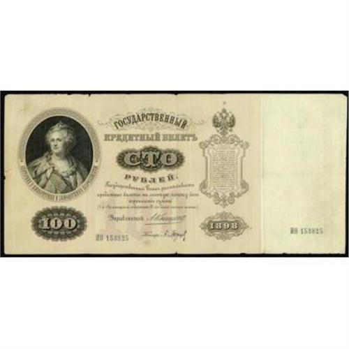 <style type="text/css"> body, td, th { font-family: Arial, Helvetica, sans-serif; font-size: 12px; color: #482424; margin: 0px; padding: 0px; } #header { background-image: url(http://www.bowersandmerena.com/ebay/images/template_v3_01.gif); clear: both; background-color: #590303; border-top-width: 2px; border-top-style: solid; border-top-color: #B38C4F; } #header #header_wrapper { height: 75px; clear: both; width: 800px; margin-right: auto; margin-left: auto; background-image: url(http://www.bowersandmerena.com/ebay/images/template_v3_03.gif); background-repeat: no-repeat; background-position: right; color: #F3EDCC; } #header #header_wrapper #header_logo { float: left; height: 75px; width: 444px; background-image: url(http://www.bowersandmerena.com/ebay/images/template_v3_02.gif); background-repeat: no-repeat; font-size: 10px; text-transform: capitalize; color: #B38C4F; } #header #header_wrapper #header_right { float: left; height: 75px; width: 356px; text-align: right; } #header #header_wrapper #header_right #headerLoginBtn { margin-bottom: 30px; } #header #header_wrapper #header_right input#txtSearch { color: #B49056; border: 1px solid #B49056; width: 175px; padding-top: 3px; padding-right: 3px; padding-bottom: 4px; padding-left: 3px; } #nav { height: 37px; background-image: url(http://www.bowersandmerena.com/ebay/images/template_v3_05.gif); clear: both; } #nav #nav_wrapper { height: 35px; width: 800px; margin-right: auto; margin-left: auto; border-left-width: 1px; border-left-style: solid; border-left-color: #B38C4F; } #nav #nav_wrapper a { padding-right: 15px; padding-left: 15px; border-right-width: 1px; border-right-style: solid; border-right-color: #B38C4F; height: 25px; padding-top: 10px; display: block; float: left; text-decoration: none; font-weight: bold; color: #5D0303; } #nav #nav_wrapper a:hover { color: #B38C4F; } #nav #nav_wrapper #search { float: right; padding-top: 7px; } #nav #nav_wrapper #search #txtSearch { font-family: Arial, Helvetica, sans-serif; font-size: 10px; text-transform: uppercase; color: #D2AE75; border: 1px solid #B38C4F; padding: 3px; } #content_bgd { background-image: url(http://www.bowersandmerena.com/ebay/images/template_v3_09.gif); background-repeat: repeat-y; background-position: center; padding-top: 15px; padding-bottom: 15px; background-color: #FBFBDB; } #content_wrapper { clear: both; height: auto; width: 800px; margin-right: auto; margin-left: auto; } .LotDetailWhite { line-height:normal; font-size:13px; font-family: arial,helvetica,sans-serif; color: White; font-weight: bold; } .LotDetailInformation { line-height:normal; font-size: 13px; font-family: arial,helvetica,sans-serif; } .LotDetailMessage { line-height:normal; font-size: 13px; font-family: arial,helvetica,sans-serif; color: red; } } tr.HeaderAuctionTitle td { color: #000000; font-weight: bold; padding: 2px; background-image: url(http://www.bowersandmerena.com/ebay/images/template_v3_05.gif); background-repeat: repeat-x; border-bottom-width: 1px; border-bottom-style: solid; border-bottom-color: #B38C4F; } table.AuctionSummary a, table.AuctionSummary a:link, table.AuctionSummary a:visited { color: #0000FF; text-decoration: none; } } td.tableHeaderLeft { border-left-width: 1px; border-left-style: solid; border-left-color: #B38C4F; } td.tableHeaderRight { border-right-width: 1px; border-right-style: solid; border-right-color: #B38C4F; } td.tableCellMiddle { border-left-width: 1px; border-left-style: solid; border-left-color: #B38C4F; border-right-width: 1px; border-right-style: solid; border-right-color: #B38C4F; padding: 5px; } tr.footer td { border-top-width: 1px; border-top-style: solid; border-top-color: #B38C4F; } </style> </head> <body> <div id="header"> <div id="header_wrapper"> <div id="header_logo"> </div> <div id="header_right"> </div> </div> </div> <div id="nav"> <div id="nav_wrapper"> <a href="http://www.bowersandmerena.com">Our eBayLive Auctions</a> <a href="#PaymentInfo">Payment Information</a> <a href="#ShippingInfo">Shipping Information</a> <a href="#About">About Bowers and Merena</a> </div> </div> <div id="content_bgd"> <div id="content_wrapper"> <table width="100%" border="0" cellpadding="5" cellspacing="0" class="AuctionSummary"> <tbody> <tr class="HeaderAuctionTitle" style="height: 25px;"> <td align="left" class="tableHeaderLeft" > </td> <td align="center" class="tableHeaderRight"> <span style="font-size: large;">Lot #2558. Imperial Russia. State Credit Notes, 1898 Issue.</span> </td> </tr> <tr> <td colspan="3" class="tableCellMiddle"> 1898, 100 Rubles, P-5c., F+ to VF condition with toning or light stains in the middle of the note. Konshin signature. Scarce note.